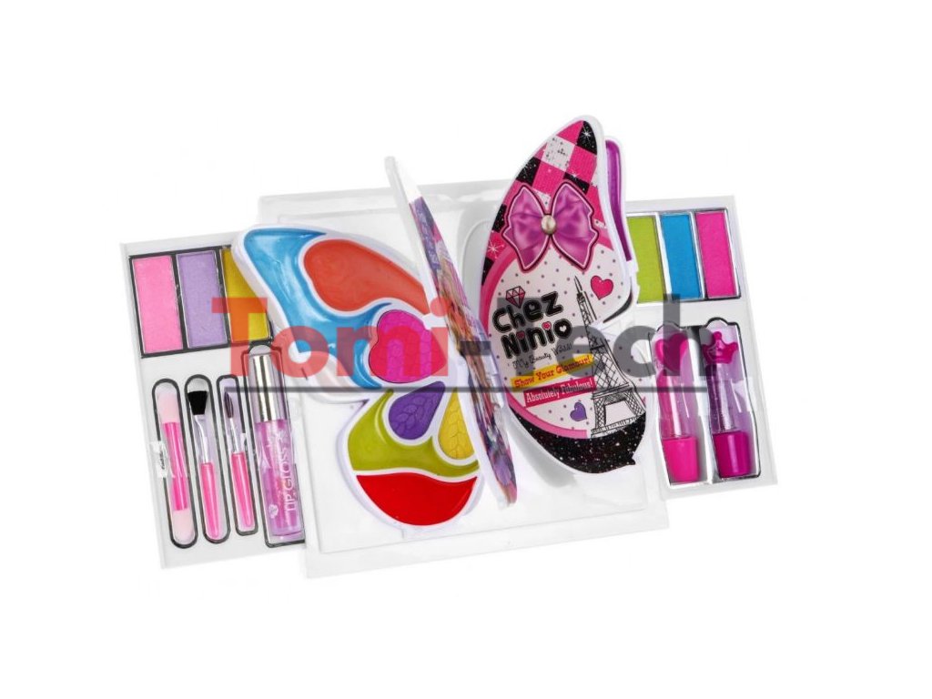 Súprava obsahuje:Škatuľka s motýľom, 2x rúž,Farebné lesky na pery, Štetočky,2x zrkadlo