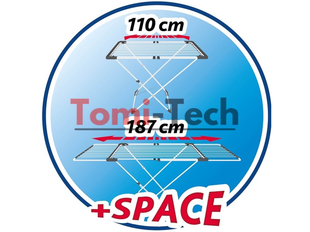 Vďaka dvom prekrývajúcim sa, nezávislým rámom umožňuje akékoľvek a stabilné usporiadanie bielizne. Je tiež vybavená hrubšími lištami, ktoré uľahčujú sušenie bielizne a zabraňujú jej pokrčeniu.