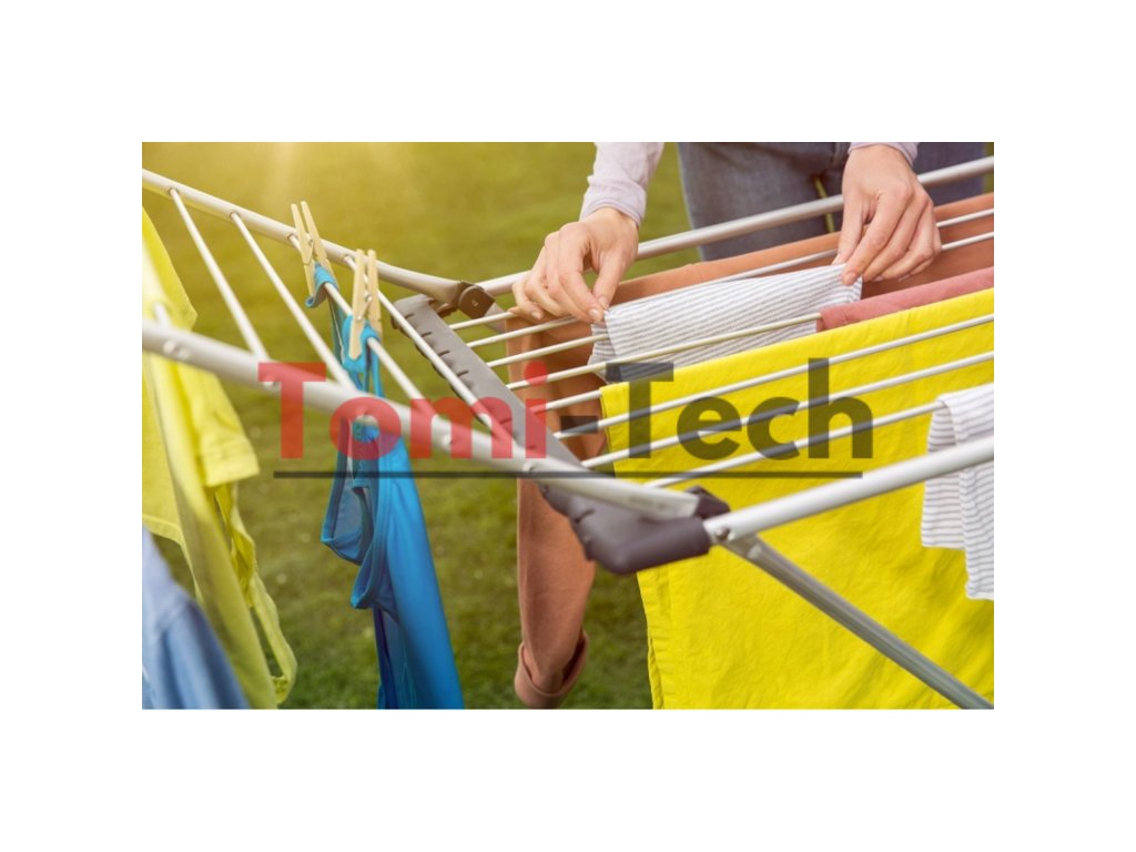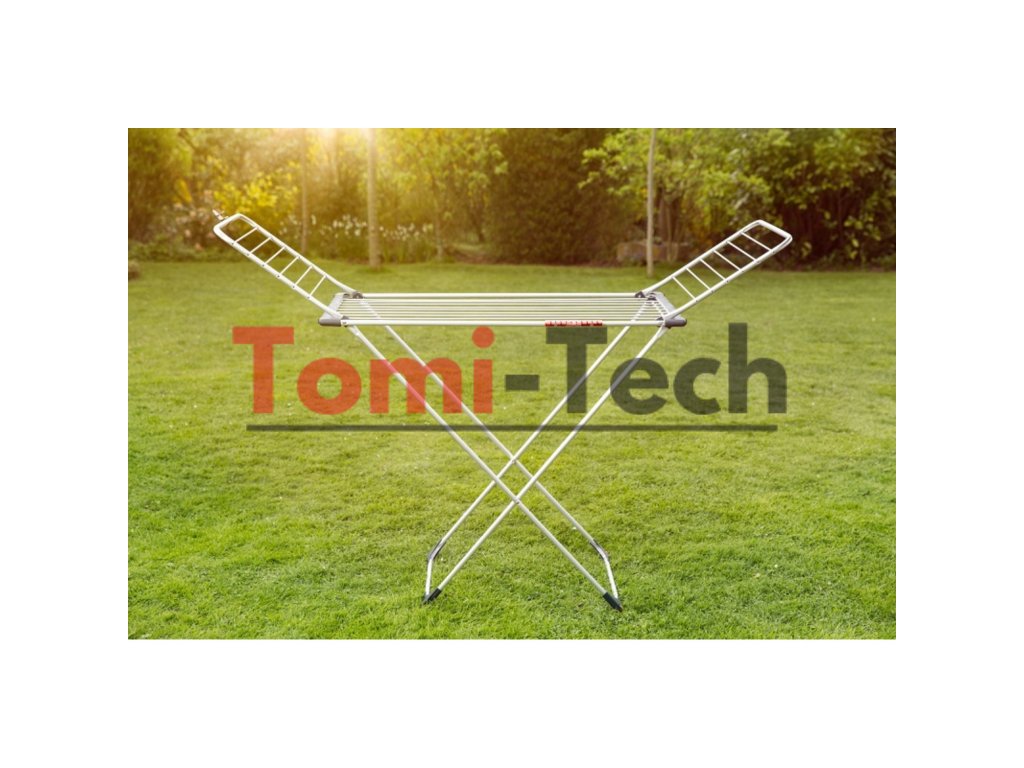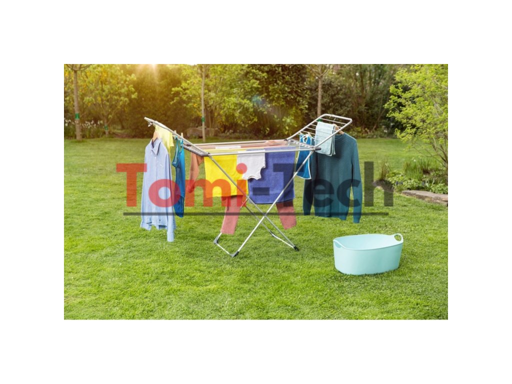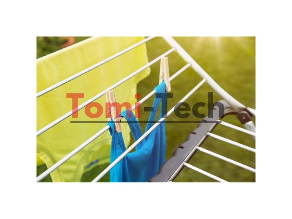 Hliníková sušička má uzamykateľný uzáver, ktorý uľahčuje skladovanie. Jeho nohy sú zakončené kolieskami, vďaka čomu je premiestňovanie sušičky mimoriadne jednoduché a stabilné.