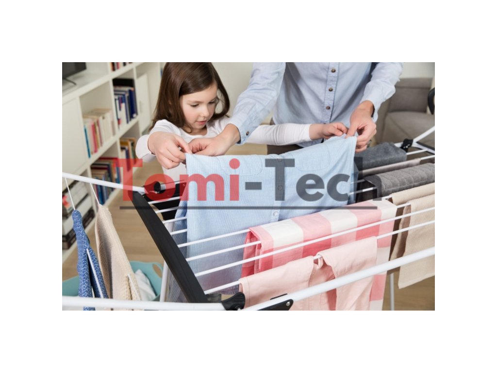 Prémiová sušička bielizne 2 v 1 je všestranná sušička s dvojitým účelom. Po úplnom rozložení umožňuje pranie ťažkej, každodennej bielizne.