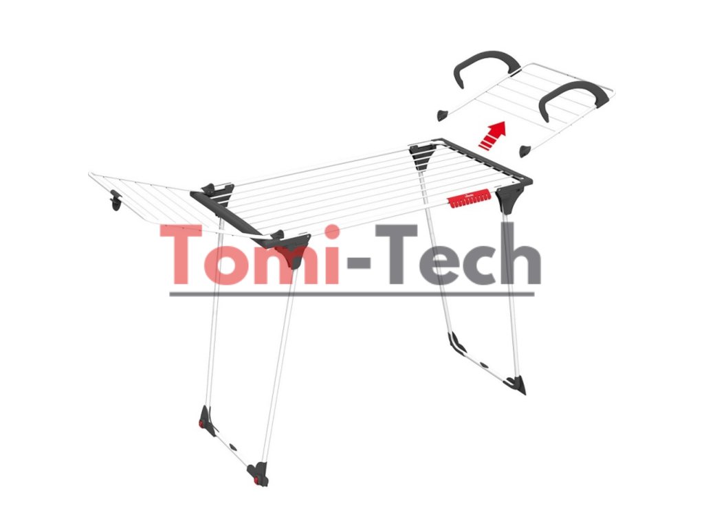 Vlastnosti- Vybavená kolieskami pre jednoduché premiestňovanie sušičky v rozloženom stave