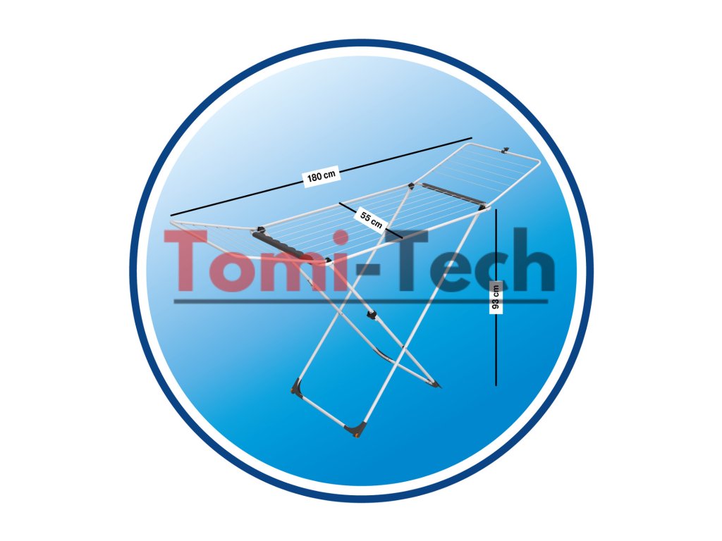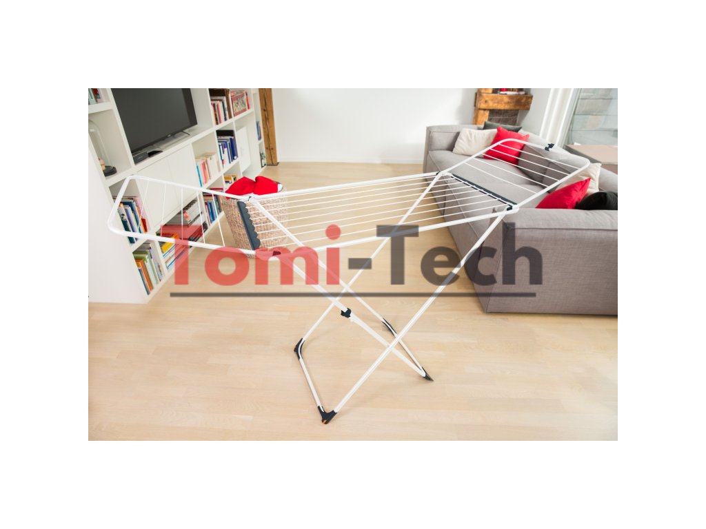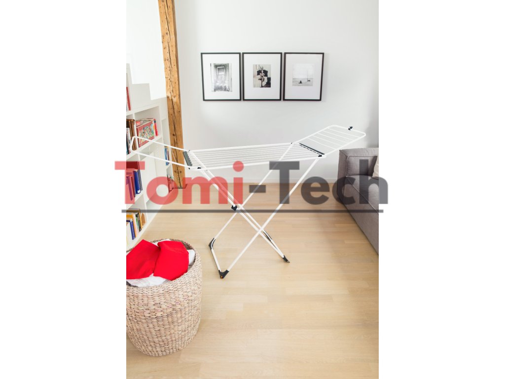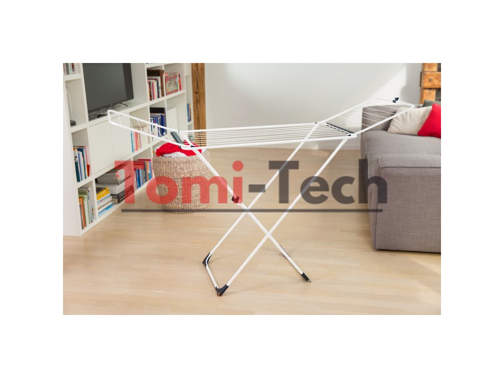 Skladacie nohy v tvare X neuveriteľne zjednodušujú skladanie sušičky. Špeciálny zámok zabraňuje jej náhodnému rozloženiu. Je tiež vybavená zámkom krídel. Robustný oceľový rám zaisťuje odolnosť a stabilitu.