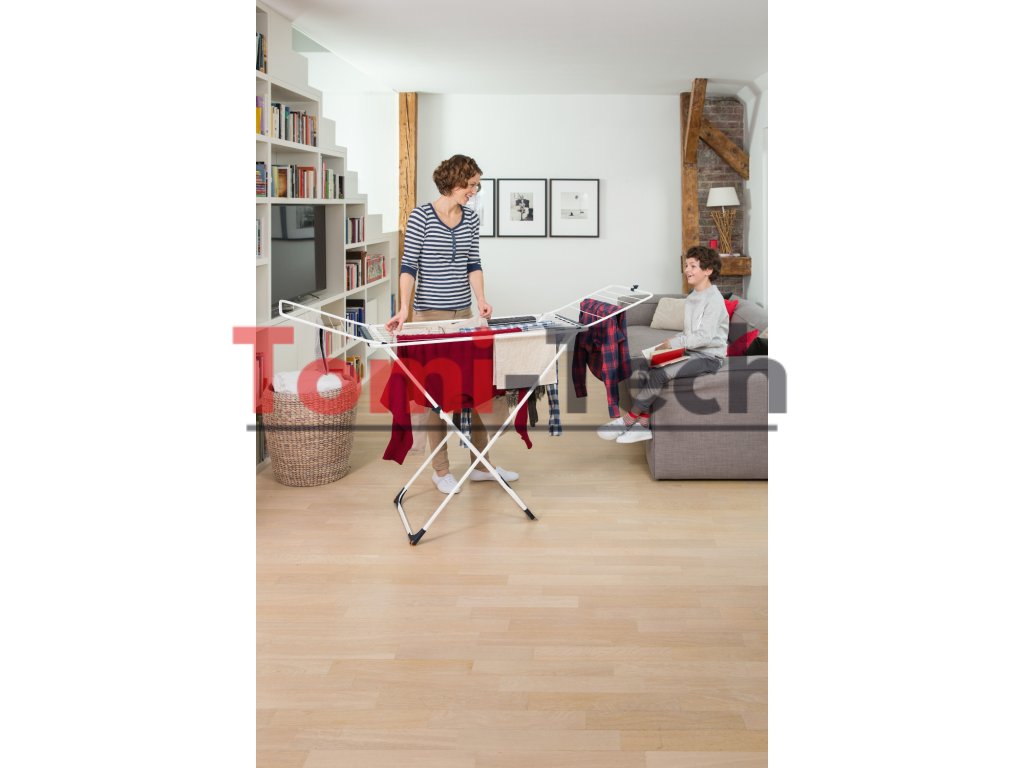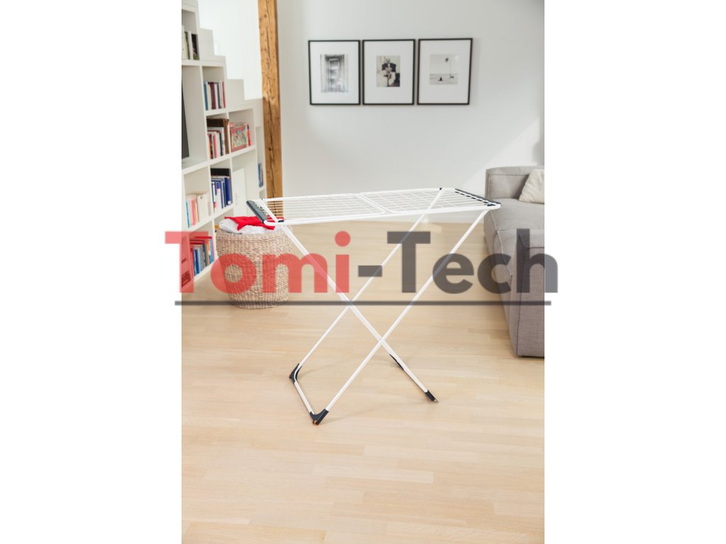 - Zámok krídel a kolieska uľahčujú premiestňovanie sušičky z miestnosti do miestnosti – aj keď je plne naplnená