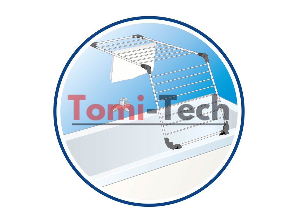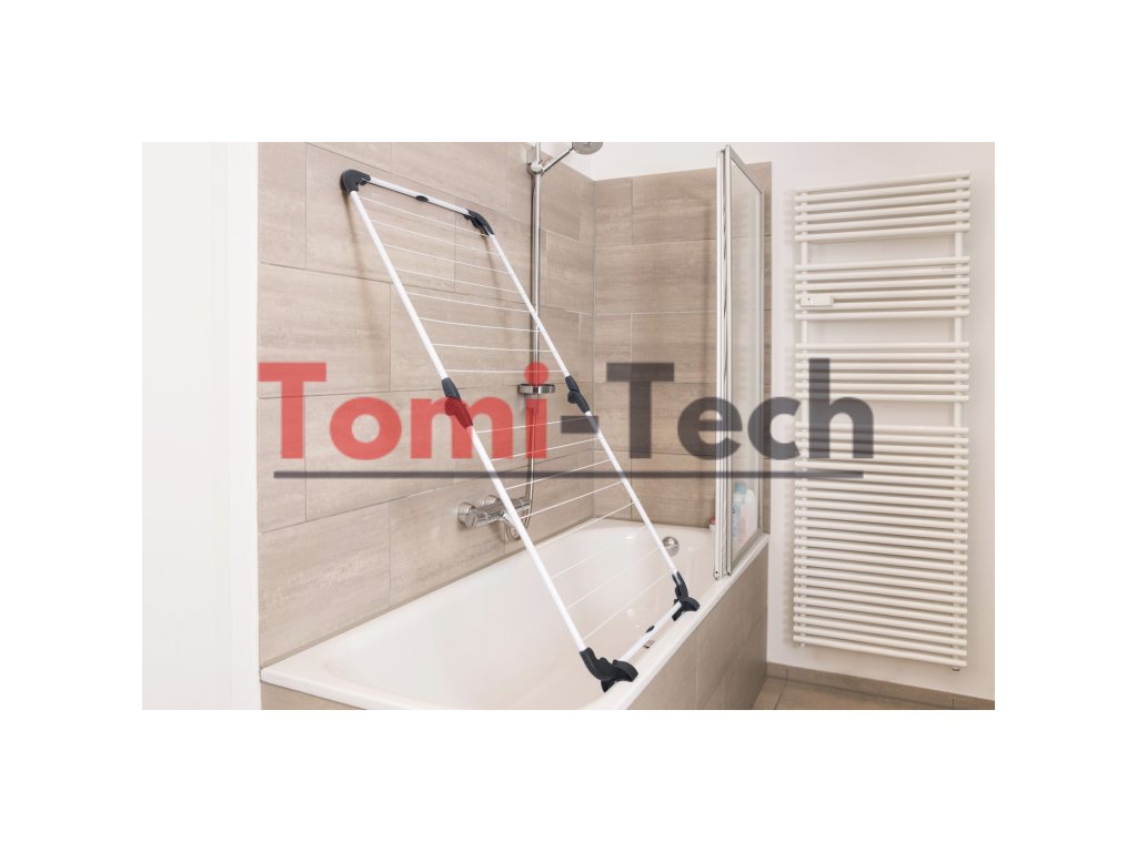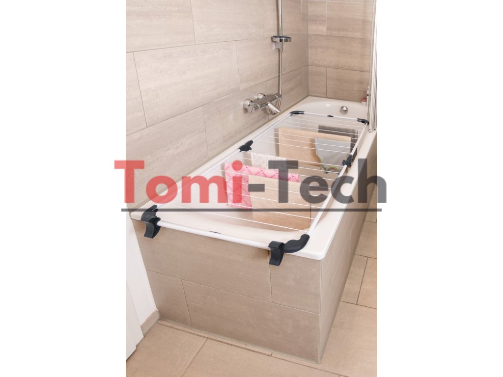 Sušička využíva dodatočný priestor vo vani a umožňuje vám rozložiť si na ňu bielizeň.