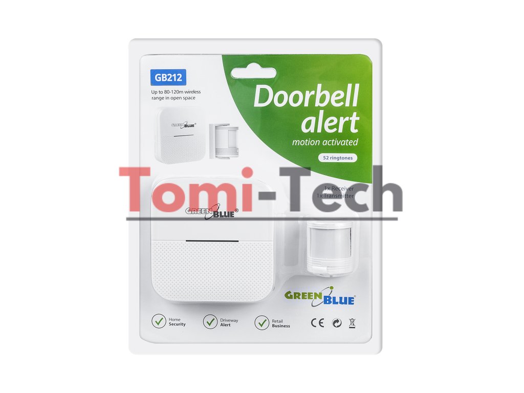 Bezdrôtová vstupná siréna GreenBlue, pohybový senzor, 52 melódií, biela, 230V AC, max. 8 senzorov, GB212