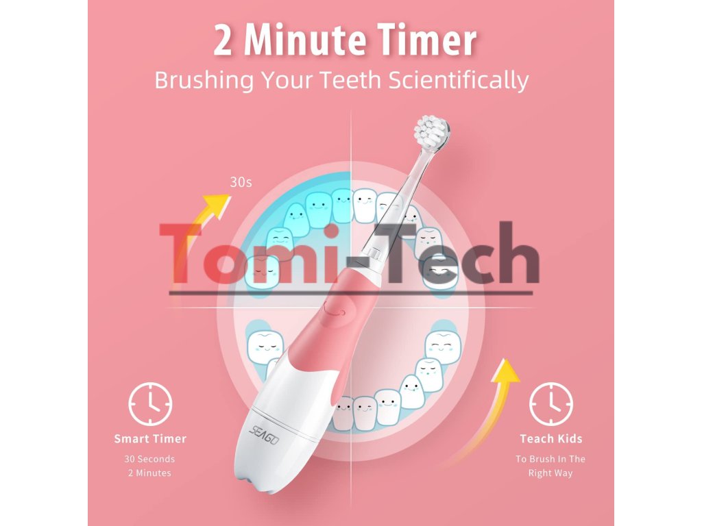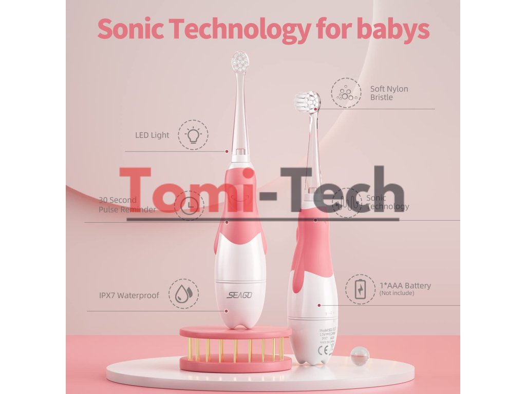 SEAGO sonická zubná kefka pre deti, ružová, 1xAAA 1,5V (nie je súčasťou balenia), 4 hlavice, SG-513 Ružová