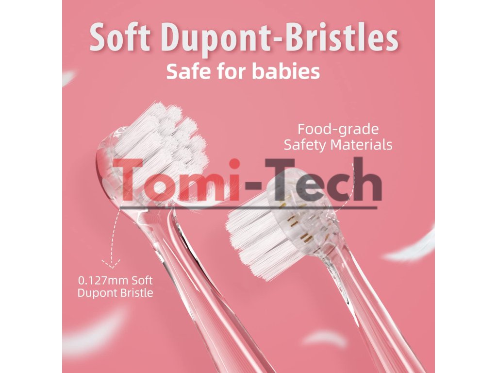 Mäkké nylonové štetiny DuPont sú vyberané podľa prísnych kritérií, aby chránili ďasná vášho dieťaťa pred poškriabaním alebo krvácaním.
