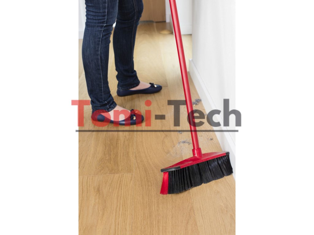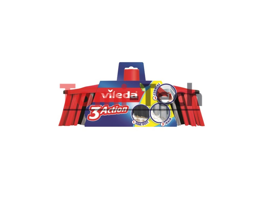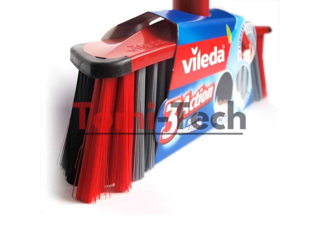 Kefa Vileda s 3 účinkami dokonale zbiera prach, vlasy, srsť a všetky druhy nečistôt. Má čierne a sivé štetiny. Prvá je ideálna na zbieranie vlasov a srsti, zatiaľ čo druhá je ideálna na prach. Červené štetiny po stranách metly sú ideálne na zbieranie nečistôt z ťažko dostupných miest, ako sú rohy. Kefa je tiež vybavená gumeným lemom na hlave, takže sa nemusíte obávať, že pri zametaní náhodne poškodíte stenu.