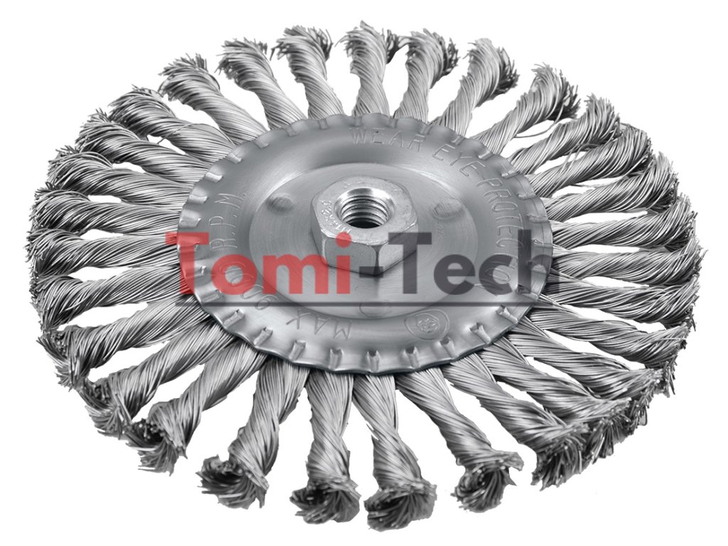 Drôtená kotúčová kefa 150 mm, skrútený oceľový drôt, M14, max. otáčky: 9000 ot./min, EN 1083-2Dodatočné parametre