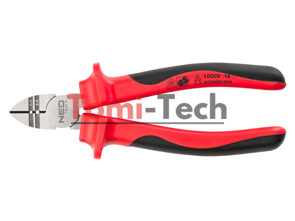 Izolované bočné kliešte, 160 mm, rukoväť z dvoch materiálov: guma + plast TPR + ABS, oceľ CrV, odizolovacie kliešte pre vodiče 1,5 a 2,5 mm, certifikát TUVDodatočné parametre
