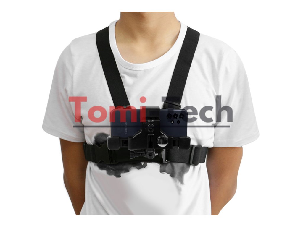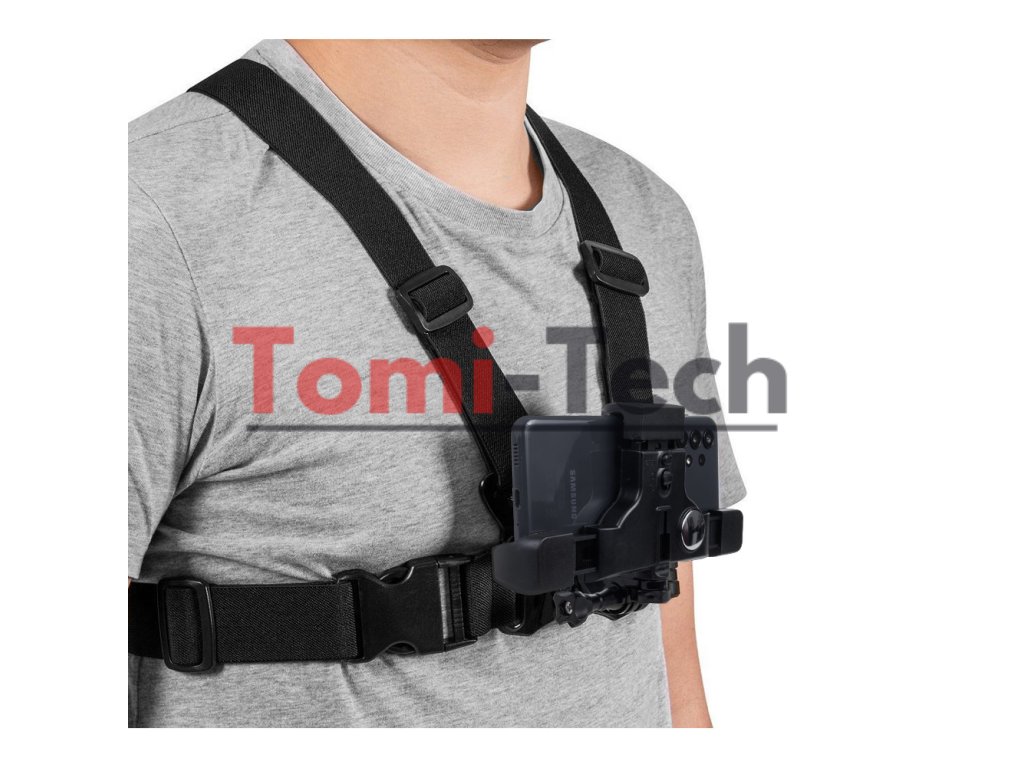Postroj umožňuje pripevniť kameru GoPro alebo telefón na hrudník. Môžu ho používať ženy aj muži, ľudia s drobnou aj mohutnejšou postavou. To všetko vďaka širokej škále nastavení a vysoko flexibilným montážnym popruhom.