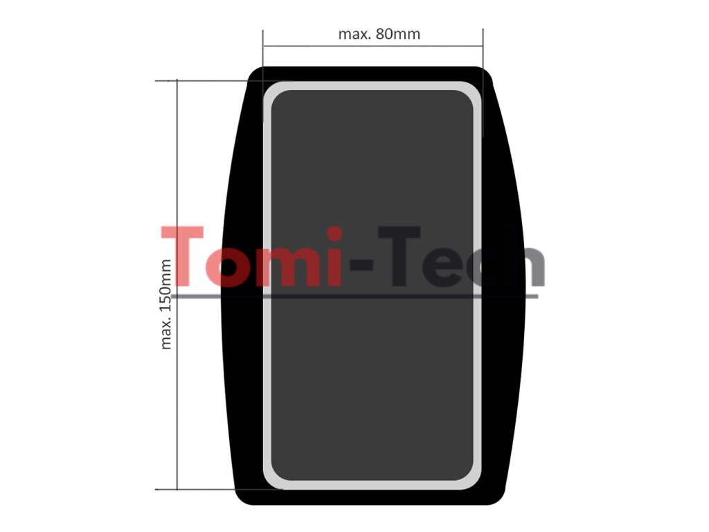 - Podporuje telefóny s maximálnymi rozmermi 8 x 15 cm