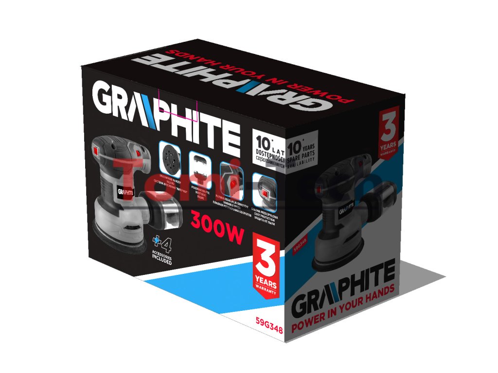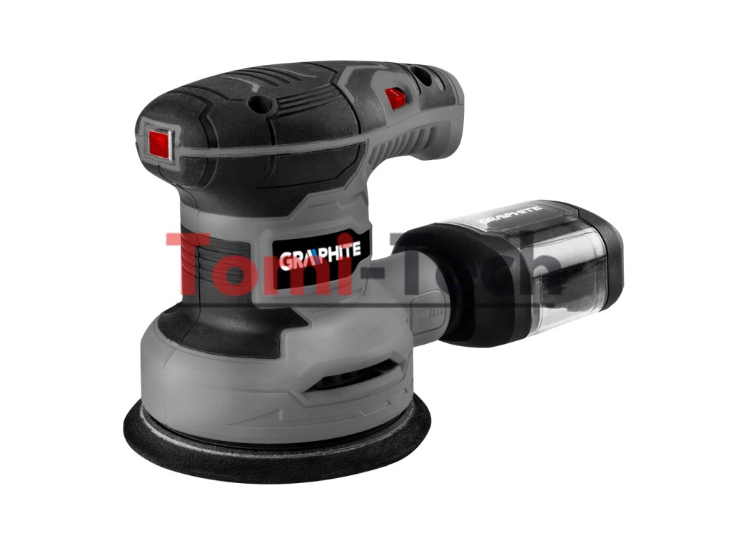 Excentrická brúska 300W, základňa 125 mm, otáčky 7000-13000 min-1, amplitúda kmitania 1 mm, brúsny papier 3 ks priemer 125 mm, hmotnosť 1,21 kg, príslušenstvo: brúsny papier, nádoba na prachDodatočné parametre