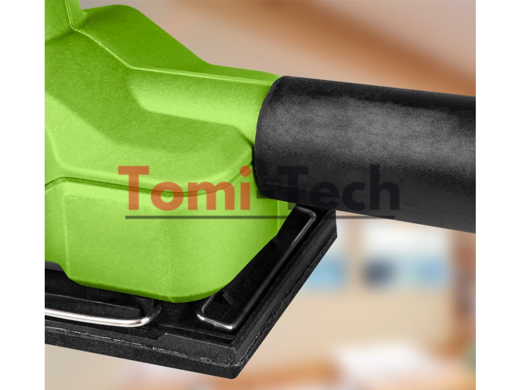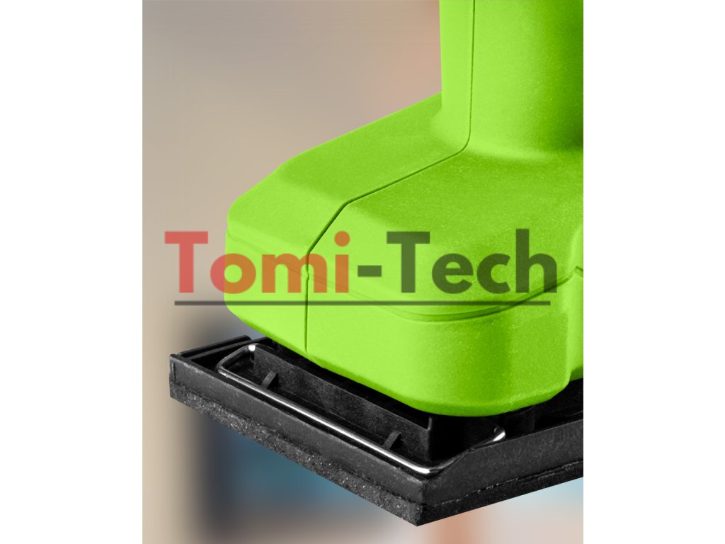 Orbitálna brúska 150 W, základňa 90 x 187 mm, otáčky 12 000 min-1, amplitúda kmitania 0,75 mm, brúsny papier 93 x 230 mm, hmotnosť 1,28 kg, príslušenstvo: brúsny papierDodatočné parametre