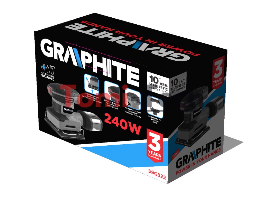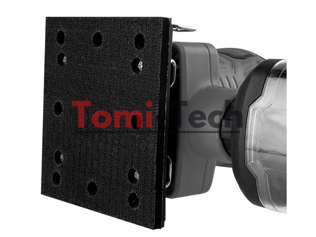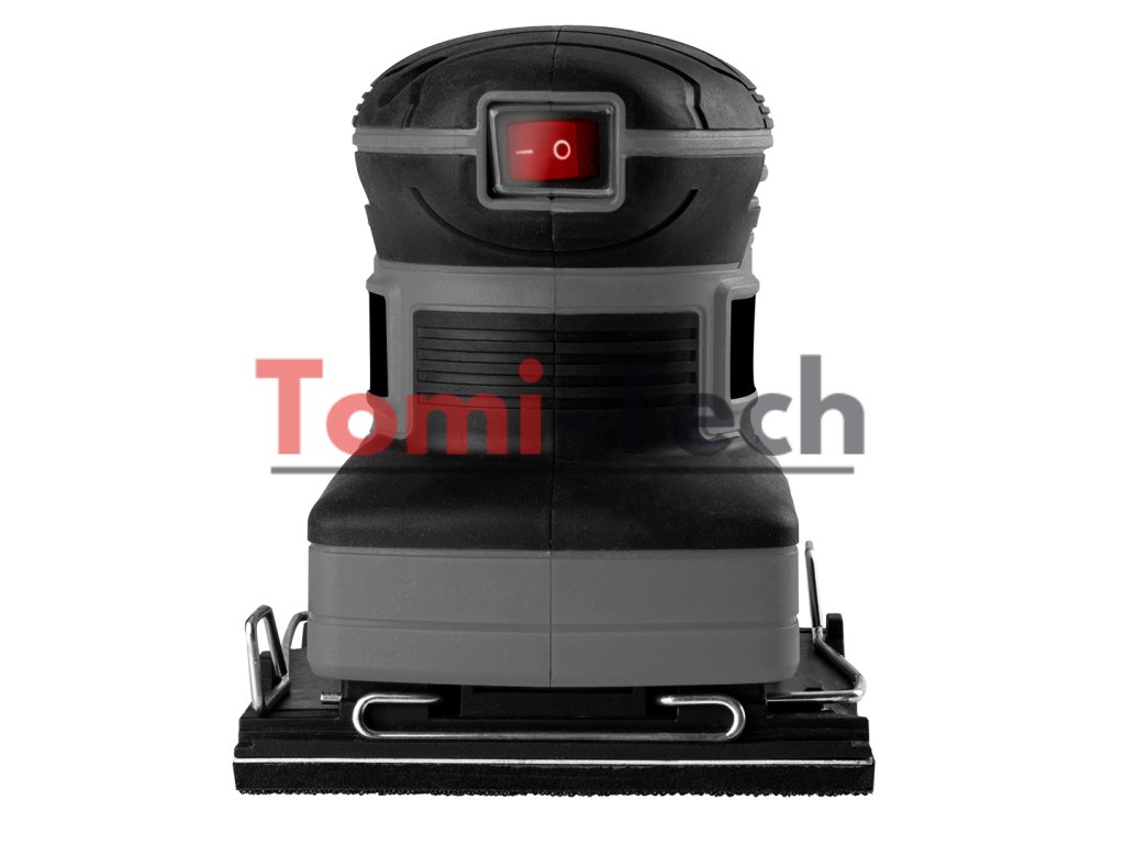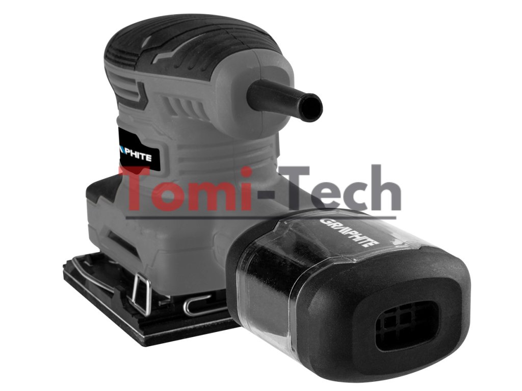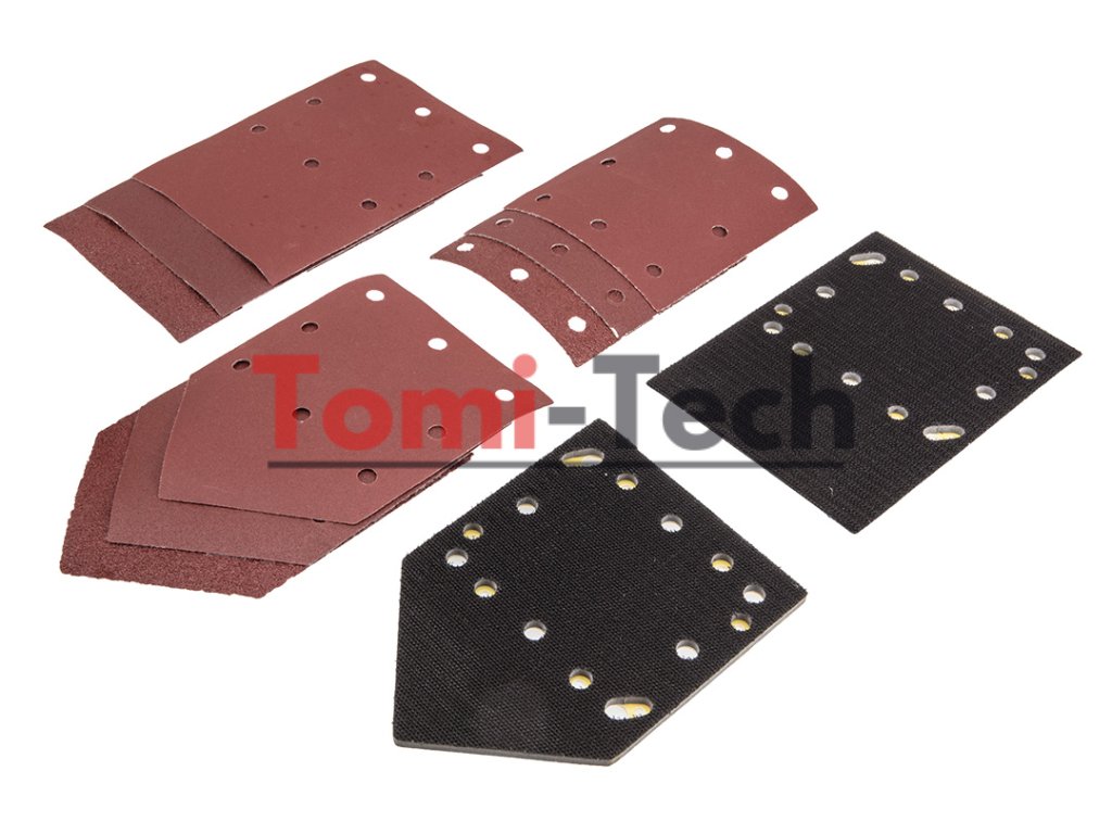 Orbitálna brúska 240 W, základňa 110 x 100 mm, 13 000 ot./min., amplitúda kmitania 0,8 mm, príslušenstvo: 3 vymeniteľné základne, štvorcová, obdĺžniková, trojuholníková, 9 brúsnych papierov, 1 nádoba na prach s filtrom; hmotnosť 1,22 kgDodatočné parametre