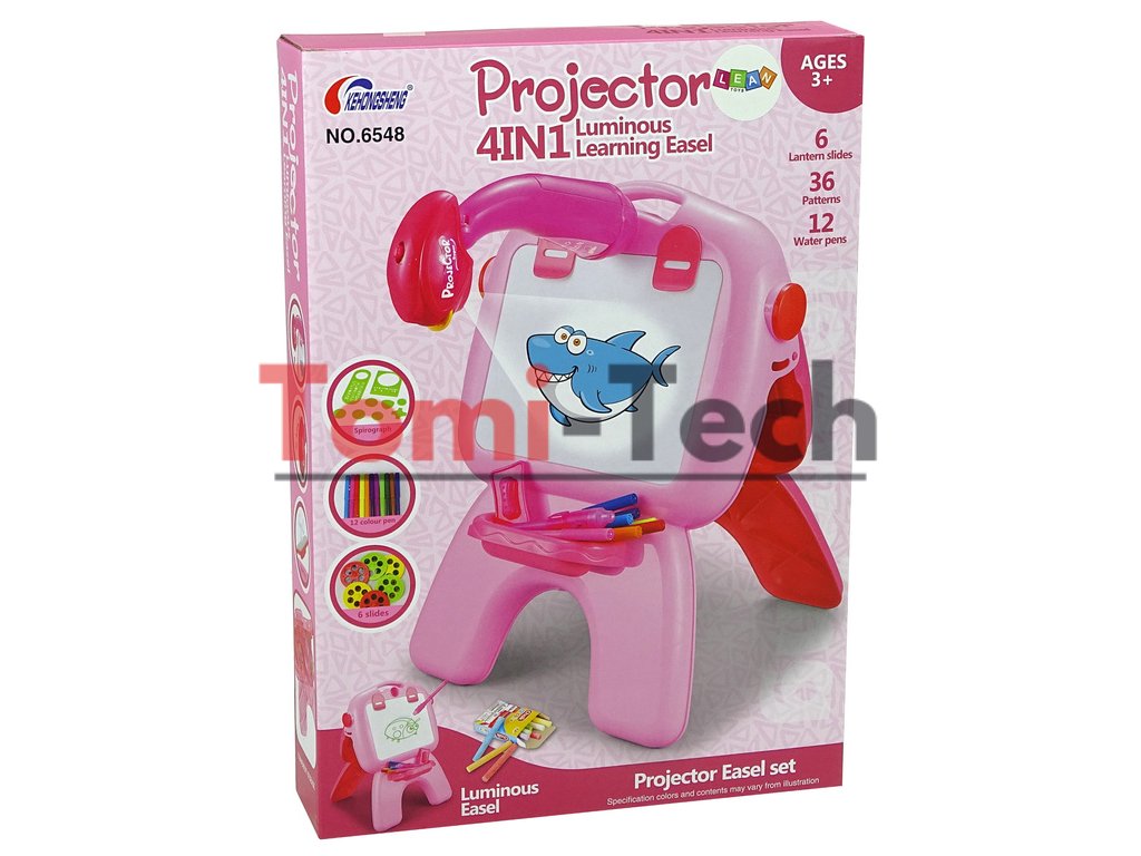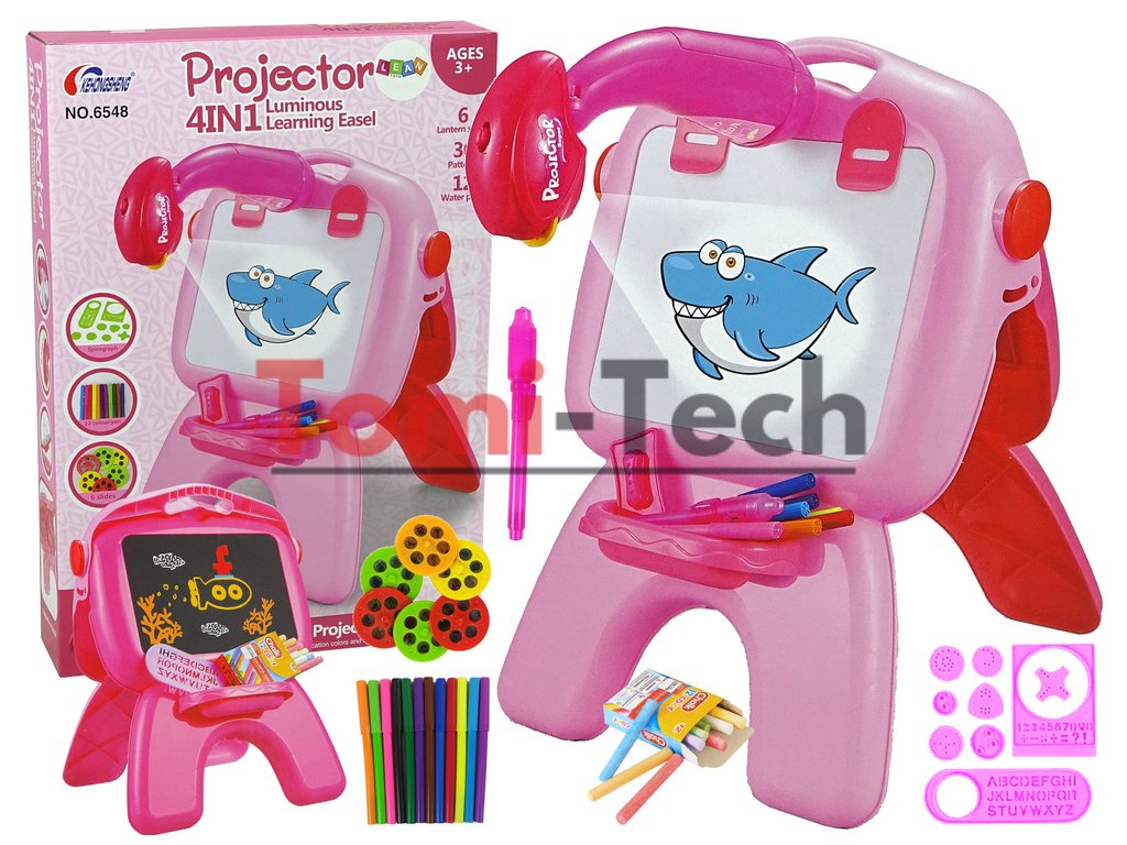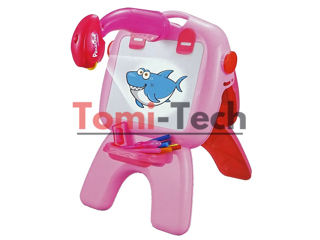 Tabuľa je veľmi pekne a starostlivo vyrobená, rozkladá sa na dvoch stranách. Dve kresliace plochy - biela, určená na používanie mazateľných fixiek, a čierna, na ktorú sa dá kresliť kriedou. Dá sa umiestniť kdekoľvek v miestnosti. Navyše má zásuvky, do ktorých sa dajú umiestniť fixky, kriedy alebo obrázky, ktoré sa majú vystaviť. Projektor umiestnený na vrchu tabule zobrazuje rôzne obrázky zvierat a postáv, ktoré sa dajú kopírovať na povrch tabule. Šablóny v sade naučia vaše dieťa vhodné názvy geometrických útvarov a písanie písmen.