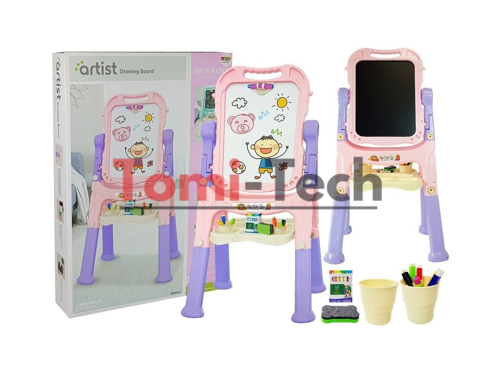 Táto multifunkčná tabuľa prinesie radosť mnohým umelcom, ale môže slúžiť aj ako učebná pomôcka. Kreslenie kriedou a fixkami je niečo pre dieťa, ktoré miluje kreslenie. Ružovo-fialová tabuľa sa hodí do každej detskej izby. Kreslenie na tabuli rozvíja umelecké schopnosti dieťaťa, jeho predstavivosť a presnosť, funkcie rúk a koordináciu oko-ruka.