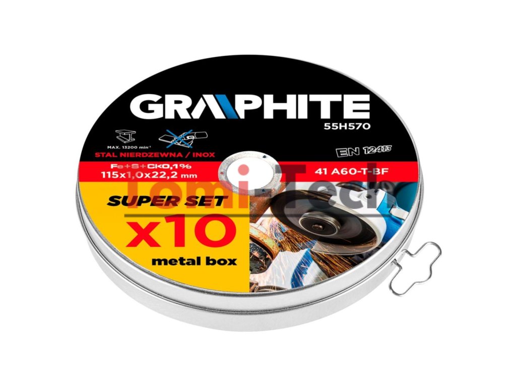 Rezný kotúč na kov 115 x 1 x 22,2 mm, 41 A60-T-BF, INOX, 10 ks.Dodatočné parametre