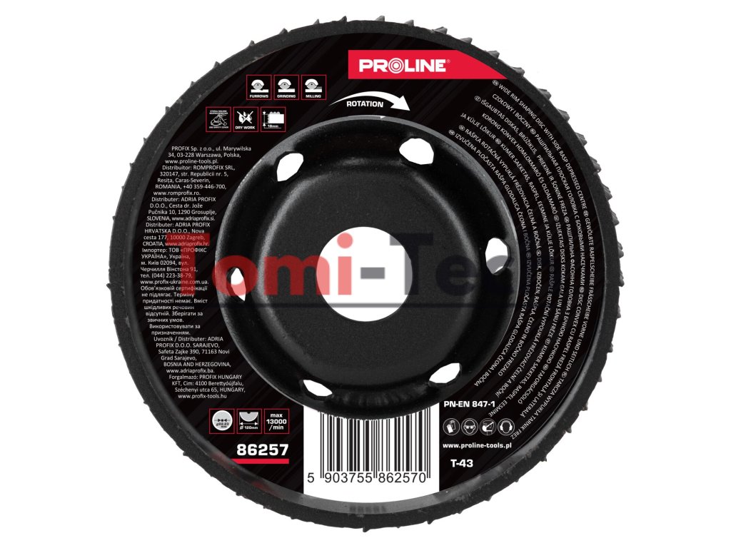 Konvexná kotúčová rašpľa s hrubými zubami, fréza s prednou stranou 120 mm, proline