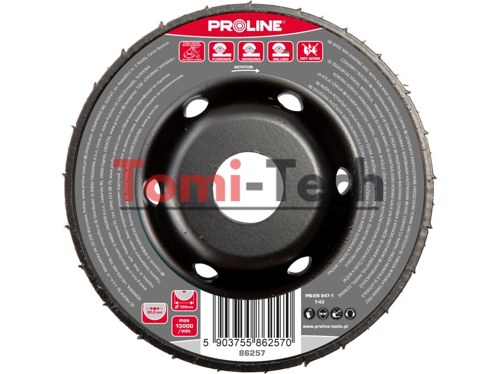 Konvexná kotúčová rašpľová fréza na hrubé zuby predná strana 120mm prolín