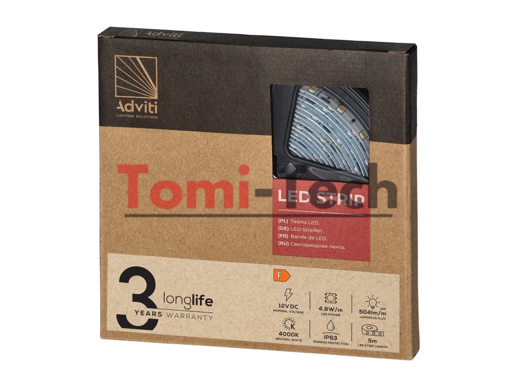 LED pásik 12V, 2835, 60L/m, 430lm/m, 4,8W/m, IP63, 4000K, 5m