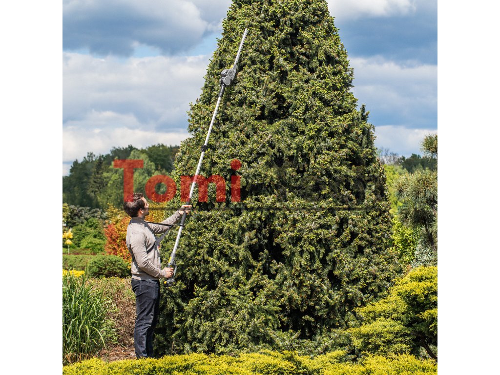 Rozšíriteľné teleskopické rameno s nastaviteľným rozsahom od 7 cm do stromov a kríkov vám umožňuje dosiahnuť aj najvyššie časti stromov až po 2. To umožňuje bezpečné rezanie bez použitia rebríka, šetrí čas a zvyšuje pohodlie pri práci.