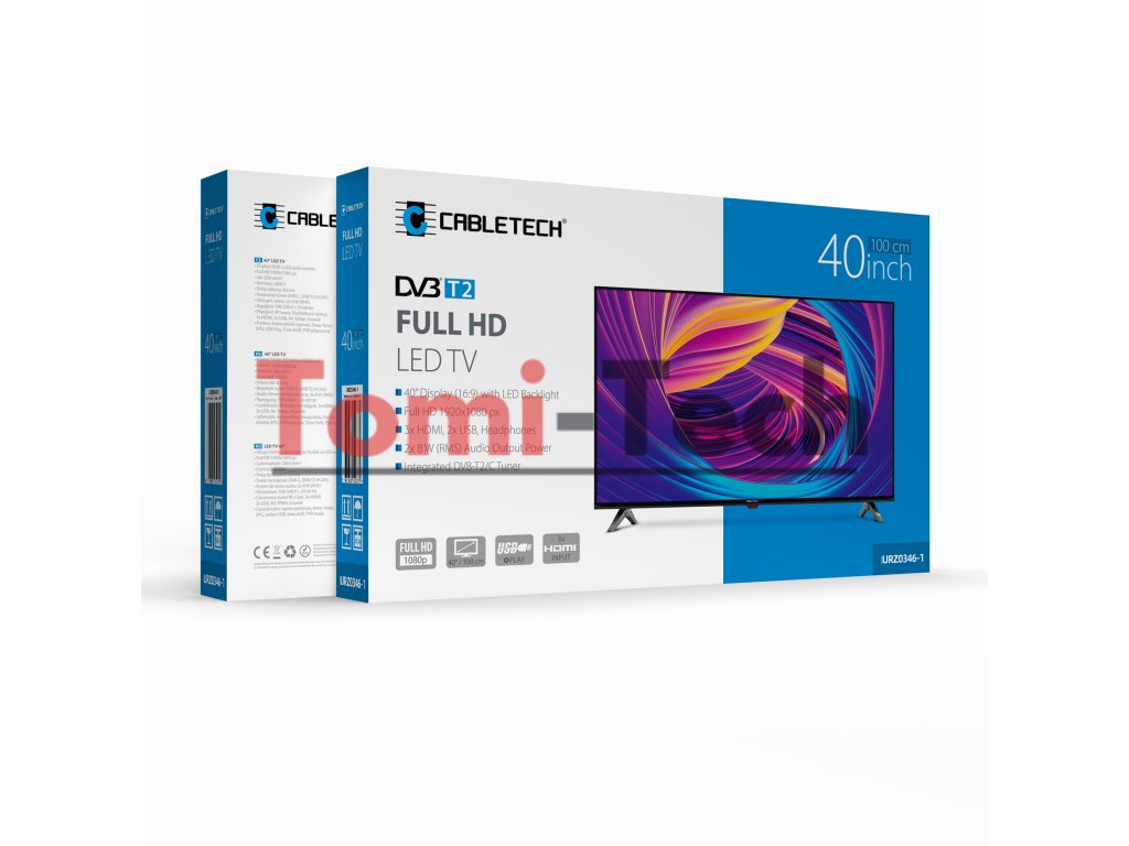 Televízor Cabletech je vybavený panelom vyrobeným technológiou D-LED, vďaka čomu zaisťuje veľmi dobrú reprodukciu farieb. Rozlíšenie Full HD, jas 200 cd/m2, vysoký kontrast 3000:1 a doba odozvy až 8,5 ms ešte viac spríjemnia sledovanie vašich obľúbených programov a filmov.
