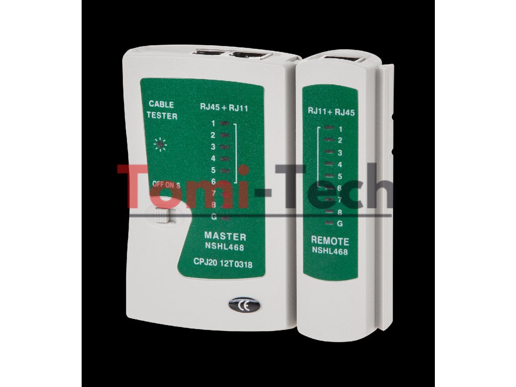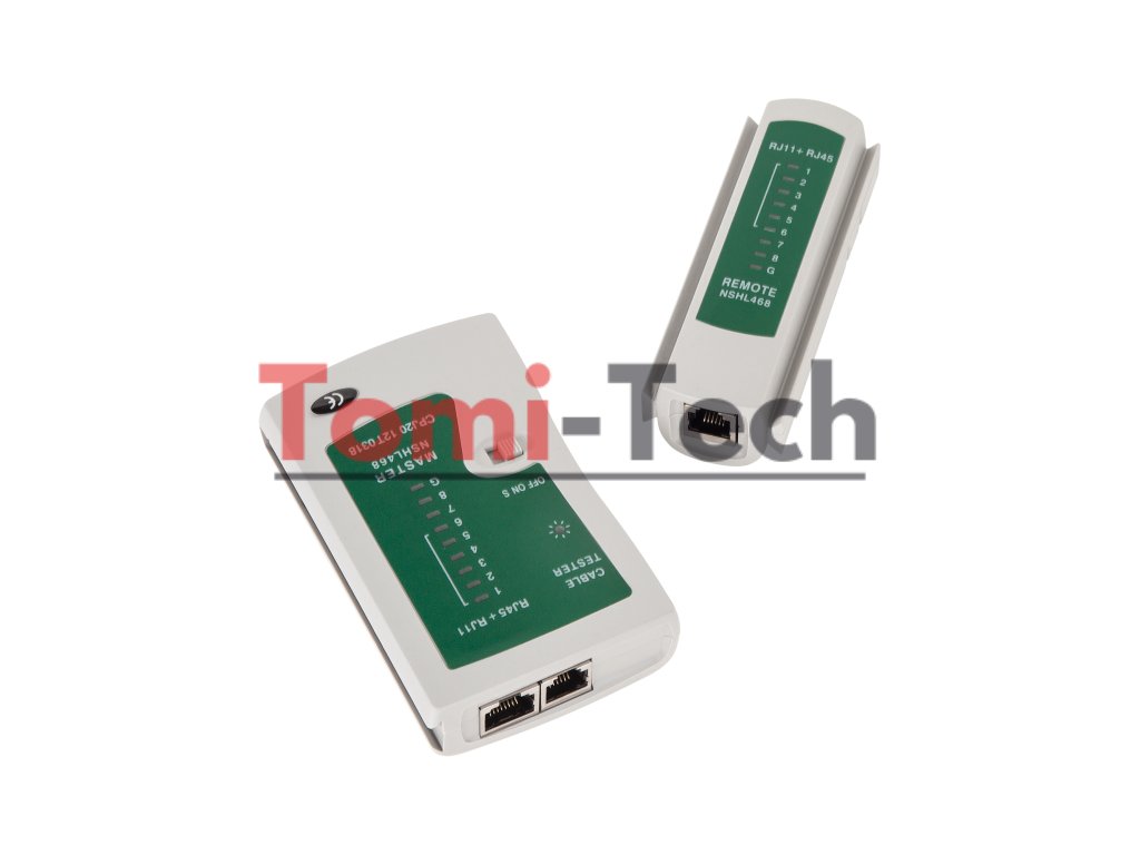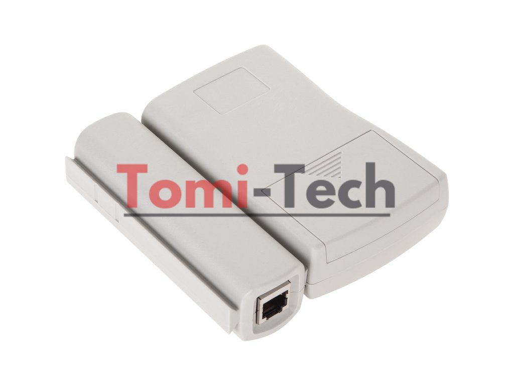 Tester je určený na testovanie sieťových káblov RJ45 nasledujúcich typov: UTP, FTP, STP a telefónnych káblov nasledujúcich typov: RJ11 a RJ12. Technické údaje: 8 LED diód na testovanie každej jednotlivej krútenej dvojlinky RJ (kábel je správne ukončený, keď sa súčasne rozsvietia paralelné LED diódy 1-1 až 8-8) Vybavený portami RJ45 a RJ12 Funkcia automatického skenovania s 2 rýchlosťami: ON - normálna a S - pomalá Zapínanie pre predĺženie výdrže batérie Napájanie batériou 6F22 9V (nie je súčasťou balenia) Rozmery testera: 10,5 x 10,5 x 2,6 cm Hmotnosť testera: približne 200 g Typy vykonávaných testov: Prerušenie (prerušenie) kábla Skrat Obrátené páry Prekrížené páry Kontrola tienenia (G - pre tienené káble RJ45 FTP)Dodatočné parametre