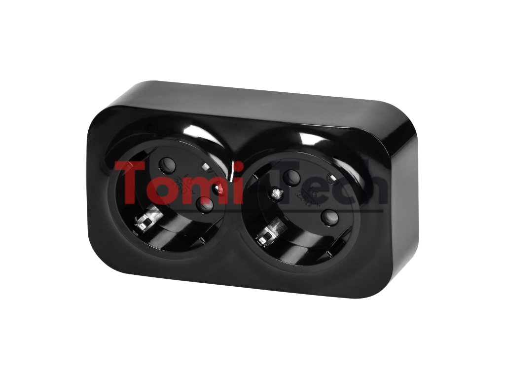 Dvojitá zásuvka ToDo 2x2P+Z, 16A/230VAC, IP20, Schuko, čierna 10 kusov