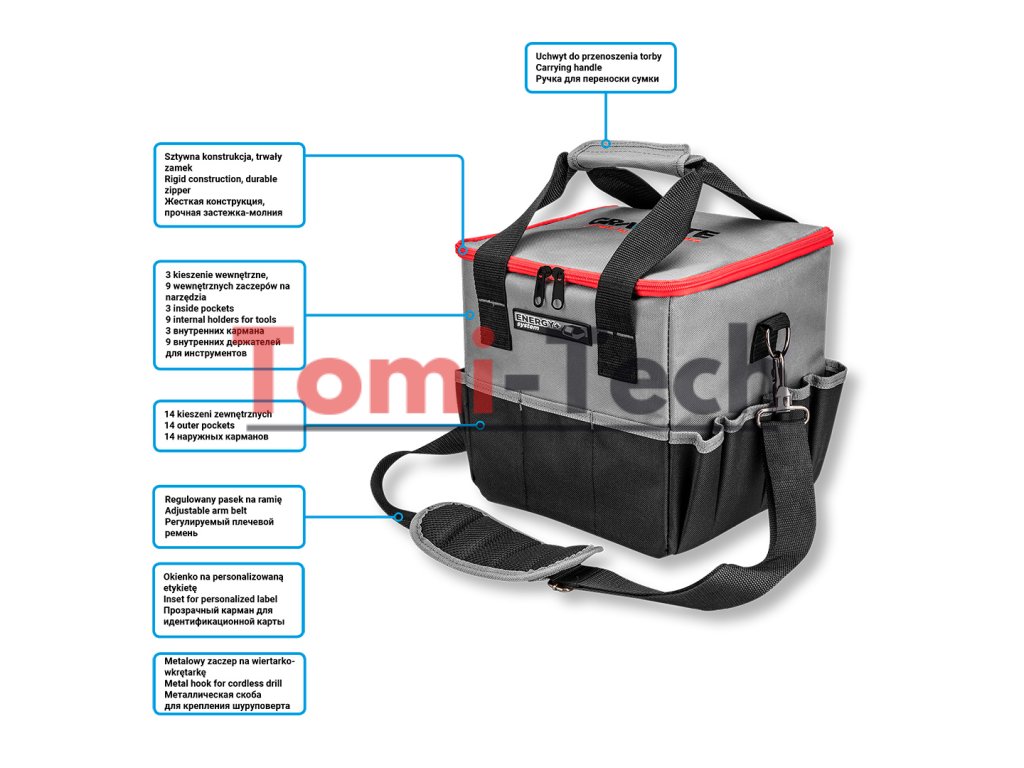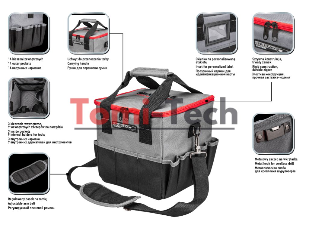 Taška na elektrické náradie, rozmery 25 x 25 x 25 cm, 12 l, polyesterDodatočné parametre