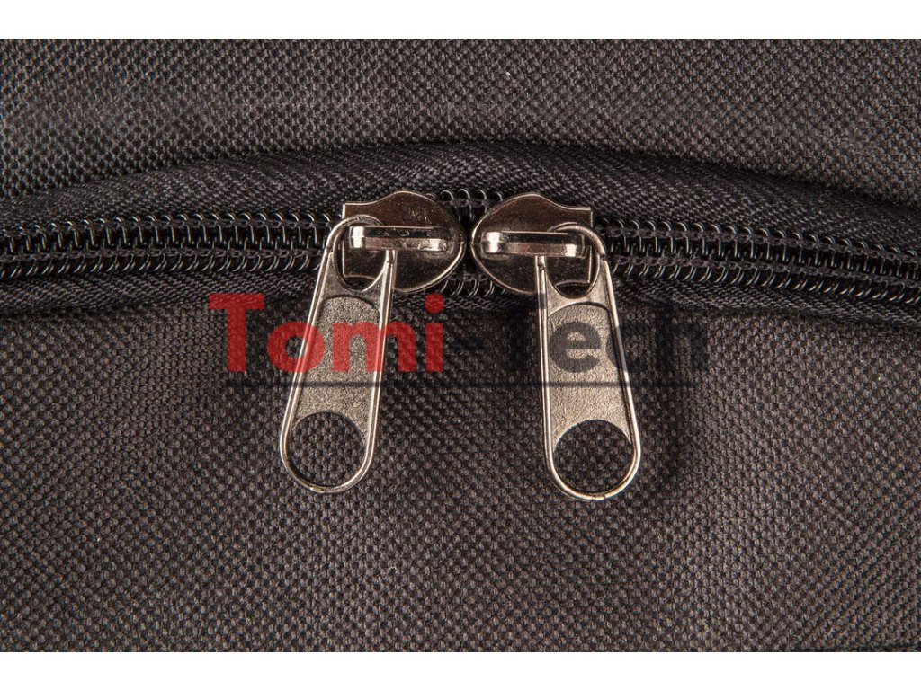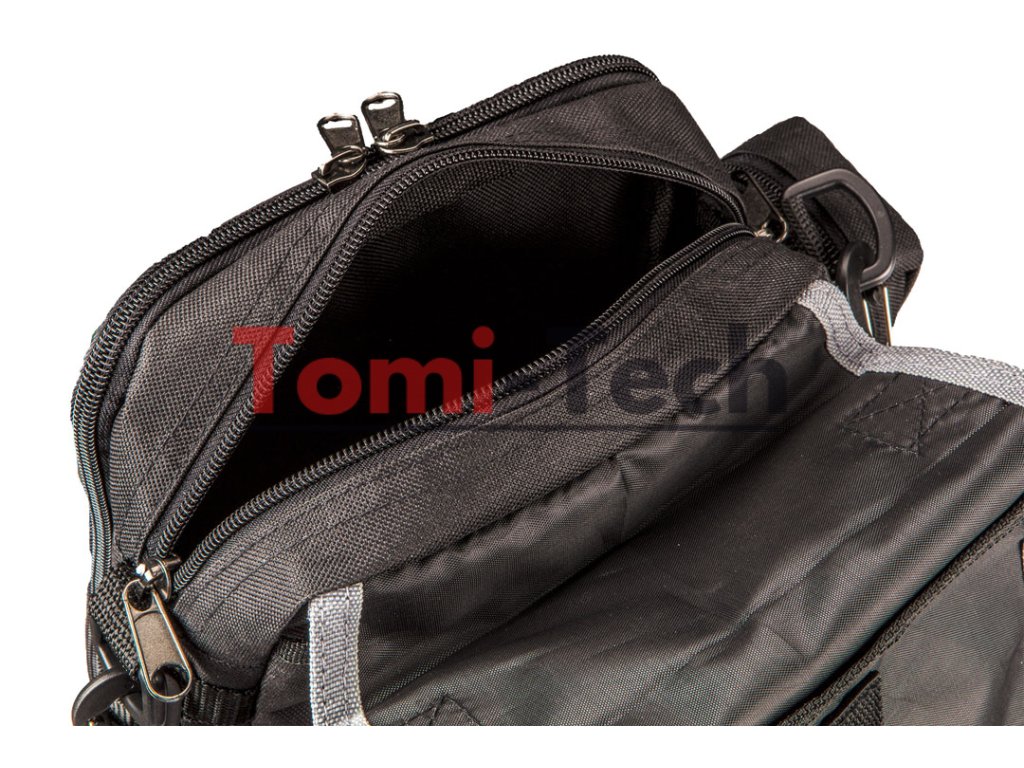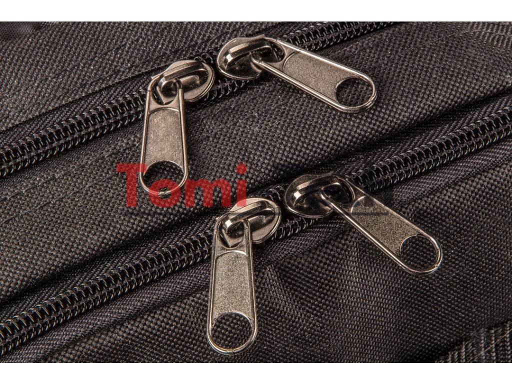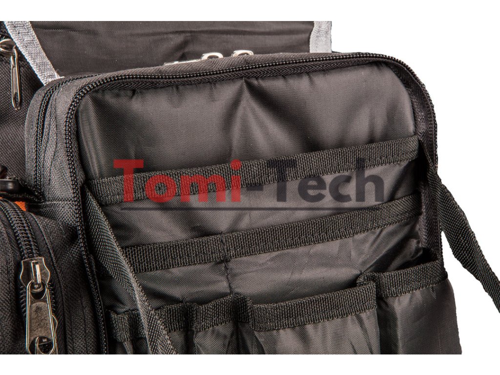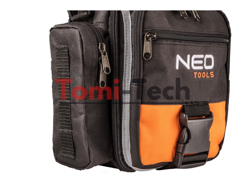Taška na náradie z polyesteru, 4 vnútorné vrecká, 4 vonkajšie vrecká, skladacia konštrukcia, rukoväť na prenášanie, nastaviteľný popruh, háčiky na náradie, háčiky na opasok, pevné zipsyDodatočné parametre