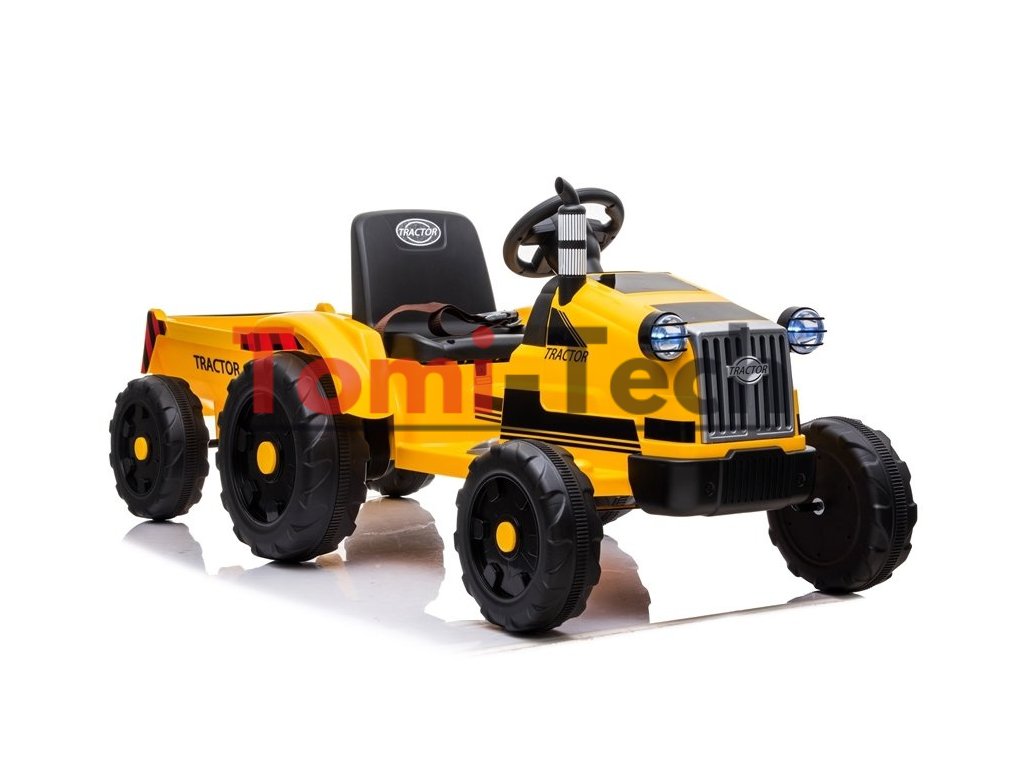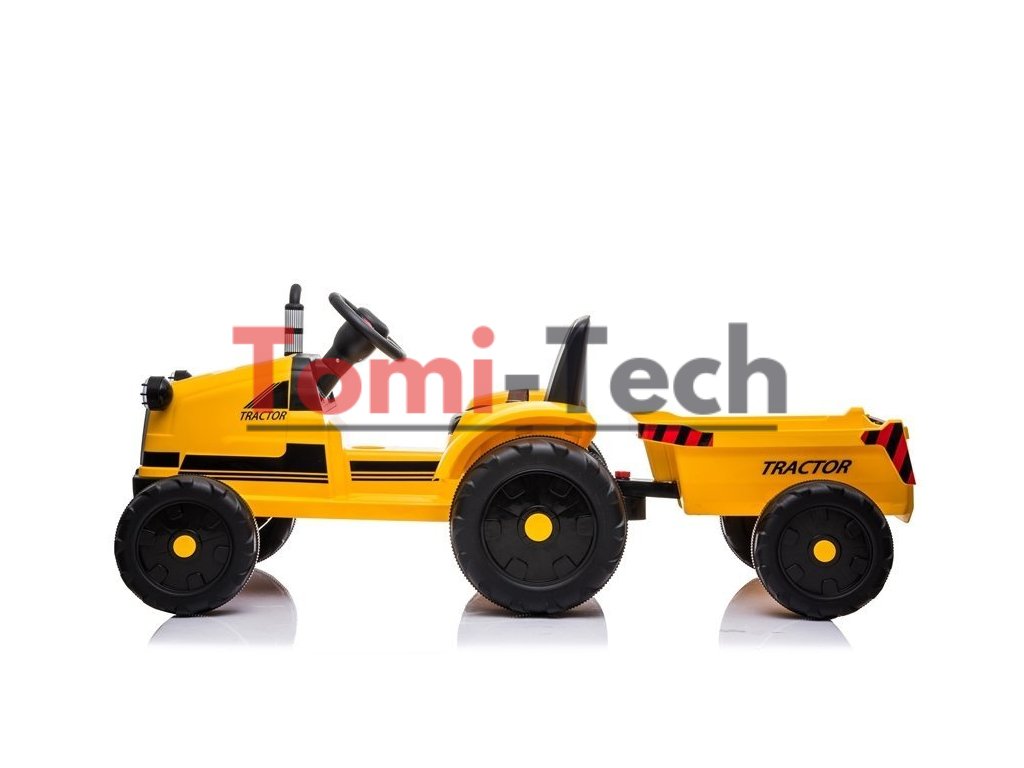 Tento traktor pre batoľatá je vyrobený z certifikovaného, pevného materiálu. Jeho konštrukcia je založená na štyroch kolesách. Tieto kolesá majú dezénovú štruktúru, takže vaše batoľa môže riadiť svoj bager na rôznych typoch povrchov bez toho, aby počas hry vydávalo nepríjemný hluk. Vozidlo pre batoľatá je poháňané batériou 12V7Ah, ktorú dopĺňajú 2x45W motory. Tieto komponenty umožňujú hru rýchlosťou od 2 do 4 km/h. Traktor je určený pre chlapcov aj dievčatá staršie ako 3 roky. Jediným obmedzením je zaťaženie presahujúce 35 kg. Stavebné vozidlo má certifikát CE a je dodávané zabalené v originálnej kartónovej krabici.