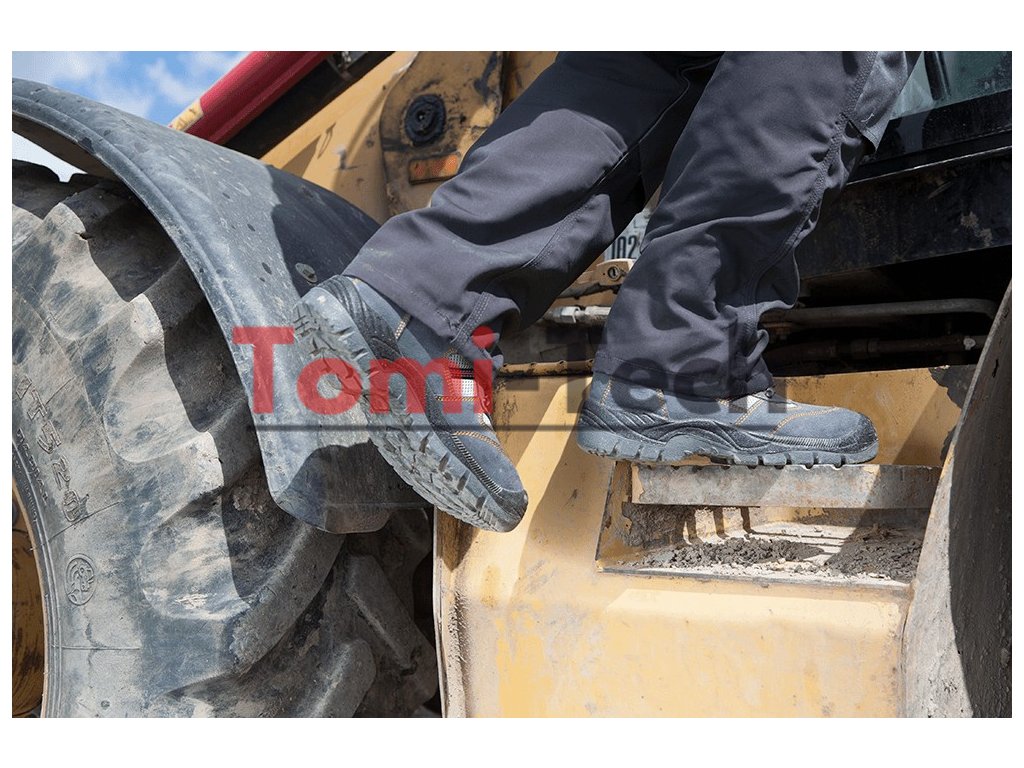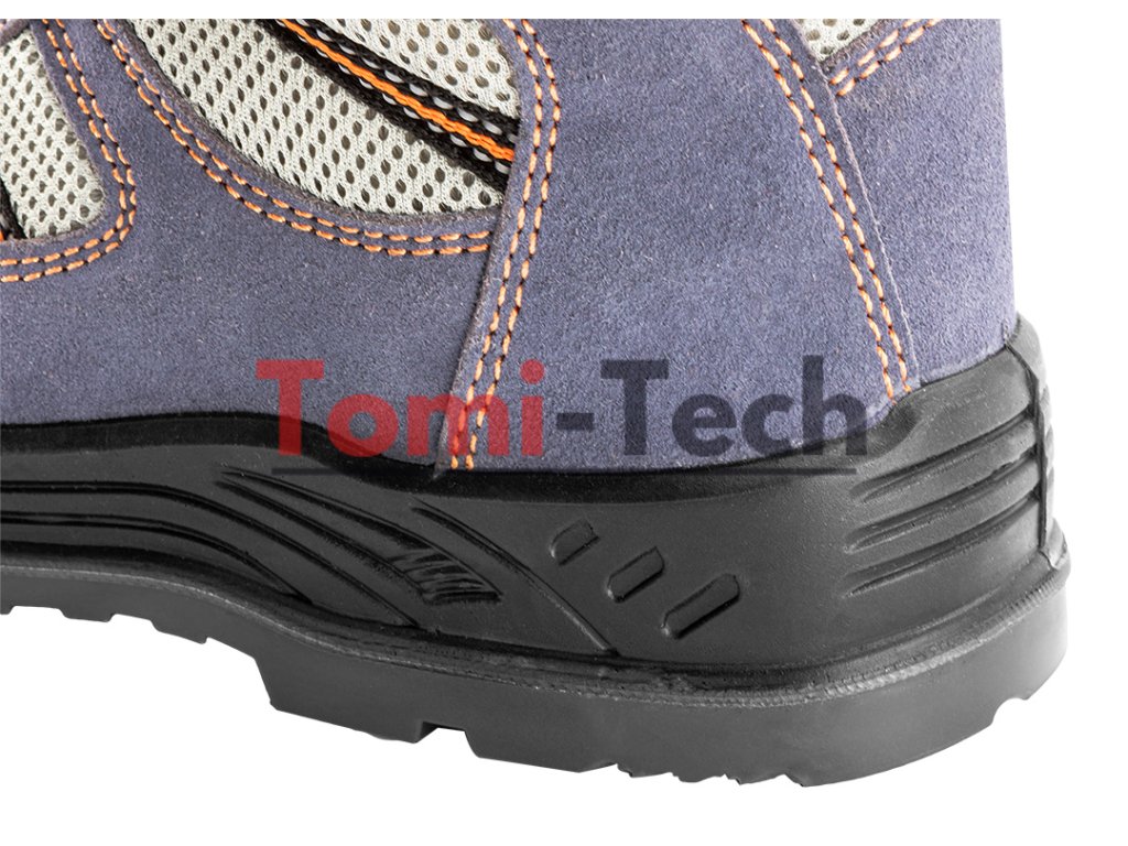 Semišové pracovné topánky, veľkosť 45, protišmyková podrážka s tlmiacim systémom, odolné voči oderu, olejom, benzínu a iným organickým rozpúšťadlám, oceľová špička odoláva nárazu do 200 J, oceľová vložka proti prepichnutiu, antistatická vložka, kovové pútka, priedušný materiál, obuv vyrobená v kategórii S1P SRA (SRA - odolnosť proti pošmyknutiu na keramickej podlahe pokrytej roztokom laurylsulfátu sodného (SLS)), certifikát CEDodatočné parametre