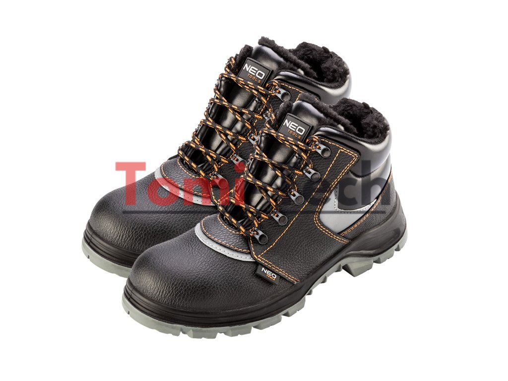 Zateplené pracovné topánky S3 SRC, veľkosť 41, kožené, vodeodolné, protišmyková podrážka s tlmiacim systémom, odolné voči oderu, olejom, benzínu a iným organickým rozpúšťadlám, oceľová špička odoláva nárazu do 200 J, oceľová vložka proti prepichnutiu, antistatická vložka, obuv vyrobená v kategórii S3 SRC, (SRC - odolnosť proti pošmyknutiu na keramickom povrchu potiahnutom roztokom laurylsulfátu sodného (SLS) a na oceľovom povrchu potiahnutom glycerolom), certifikát CEDodatočné parametre