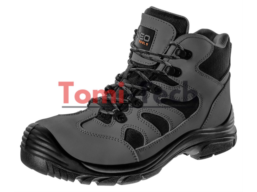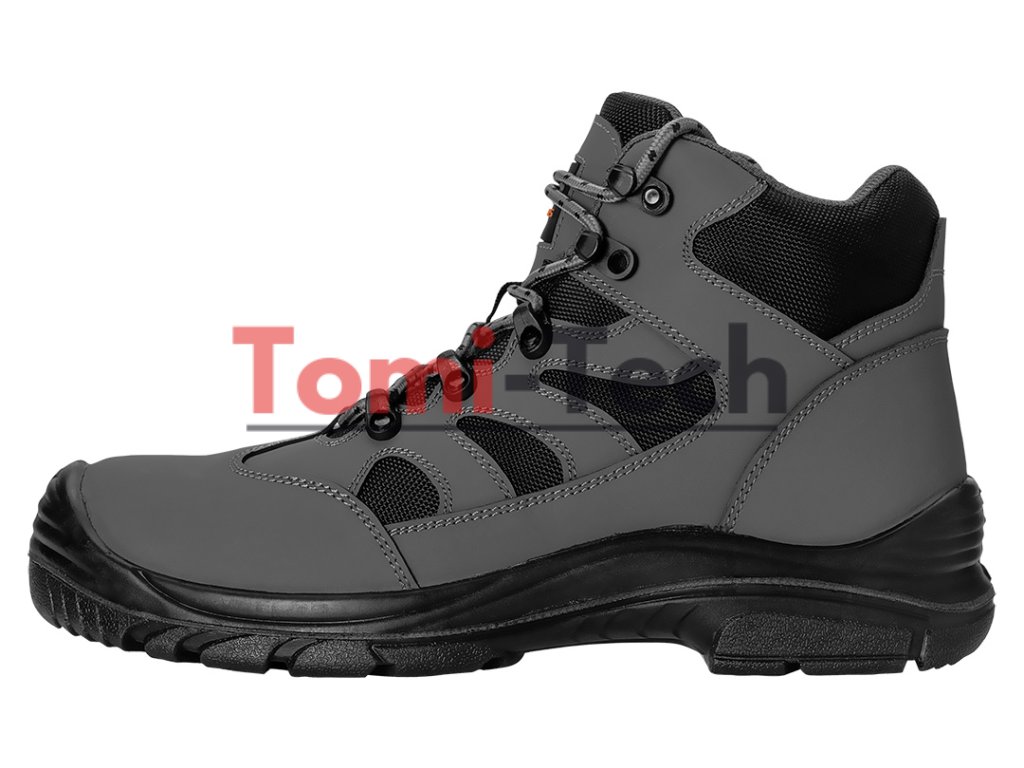 Pracovná obuv S3L SR FO, bez kovu, zvršok: nubuk, podšívka: sieťovina, podrážka: PU/PU, stielka: pena EVA, kompozitná špička a kevlarová vložka proti prepichnutiu, obuv vyrobená v kategórii S3L SR (SR - odolnosť proti pošmyknutiu na keramickom povrchu pokrytom roztokom laurylsulfátu sodného (SLS) a na oceľovom povrchu pokrytom glycerolom, špička poskytujúca ochranu pred nárazmi s energiou 200 J, odolnosť proti prepichnutiu, uzavretá päta, FO - odolnosť voči olejom, benzínu a iným organickým rozpúšťadlám, antielektrostatické vlastnosti, absorpcia energie v pätovej časti, špička pokrytá hrubou vrstvou PU na vonkajšej strane, certifikát CE, veľkosť 41Dodatočné parametre