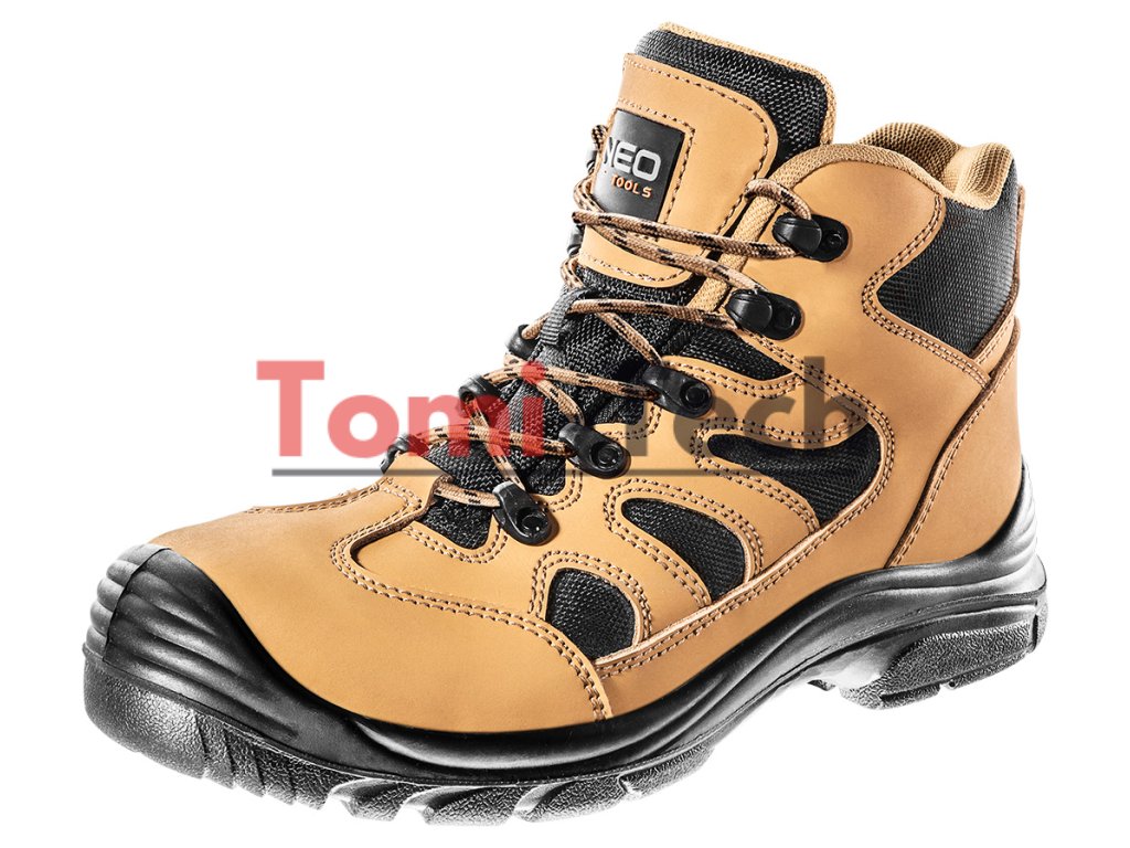 Pracovná obuv S3L SR, bez kovových prvkov, veľkosť 42, nubuková, vodeodolná, protišmyková podrážka s tlmiacim systémom, odolná voči oderu, olejom, benzínu a iným organickým rozpúšťadlám, kompozitná špička odoláva nárazu do 200 J, kompozitná vložka proti prepichnutiu (L), antistatická vložka, obuv vyrobená v kategórii S3L SR (SR - odolnosť proti pošmyknutiu na keramickom obklade pokrytom glycerolom), certifikát CEDodatočné parametre