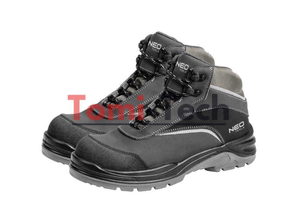 Pracovná obuv S3L SR FO, bez kovových prvkov, veľkosť 41, nubuk, zvýšená odolnosť voči premočeniu a nasiaknutiu, reflexné prvky, protišmyková podrážka s tlmiacim systémom, odolná voči oderu, olejom, benzínu a iným organickým rozpúšťadlám, dvojhustotná PU podrážka, sklolaminátová špička odoláva nárazom až do 200 J, kevlarová stielka proti prepichnutiu, antistatická stielka, šnúrky s votkanou reflexnou niťou, špička zaistená dodatočnou ochrannou vrstvou, päta a jazyk vystužené oxfordskou tkaninou, topánka vyrobená v kategórii S3L SR FO (SR - odolnosť voči pošmyknutiu na keramickom povrchu potiahnutom roztokom laurylsulfátu sodného (SLS) a na oceľovom povrchu potiahnutom glycerolom), certifikát CEDodatočné parametre