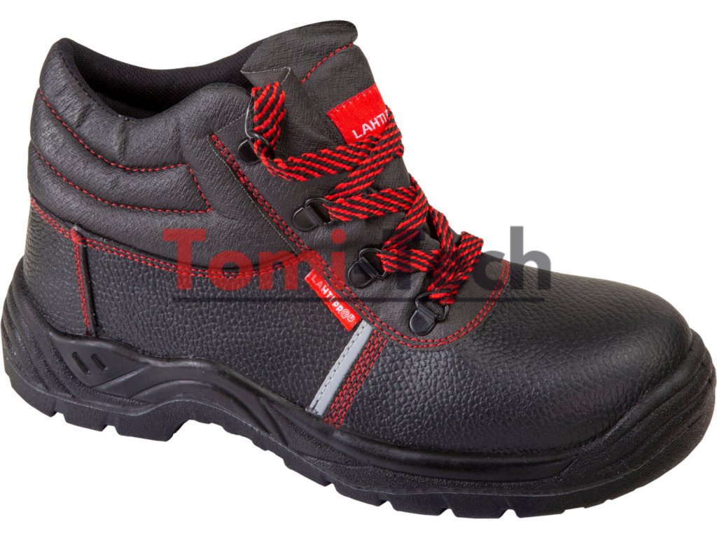 - MATERIÁL: Zvršok: koža. Podšívka: sieťovaný úplet. Vložka: vymeniteľná. Podrážka: polyuretán s dvojitou hustotou s protišmykovými vlastnosťami (keramická dlaždicová základňa potiahnutá glycerínom), odolná voči motorovej nafte, hlboký dezén zvyšuje priľnavosť k zemi.