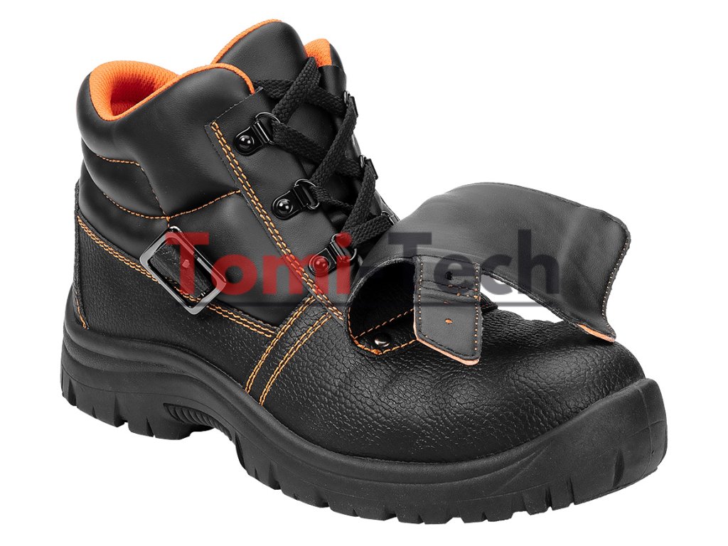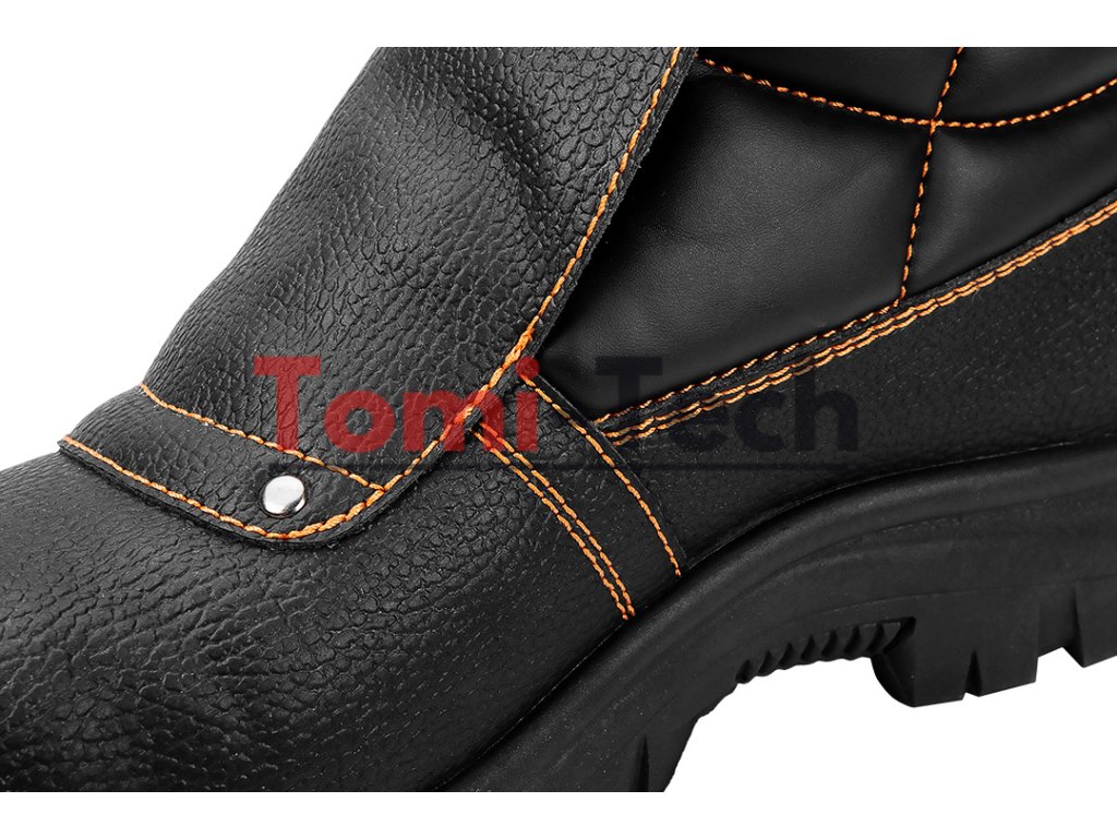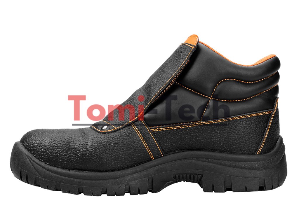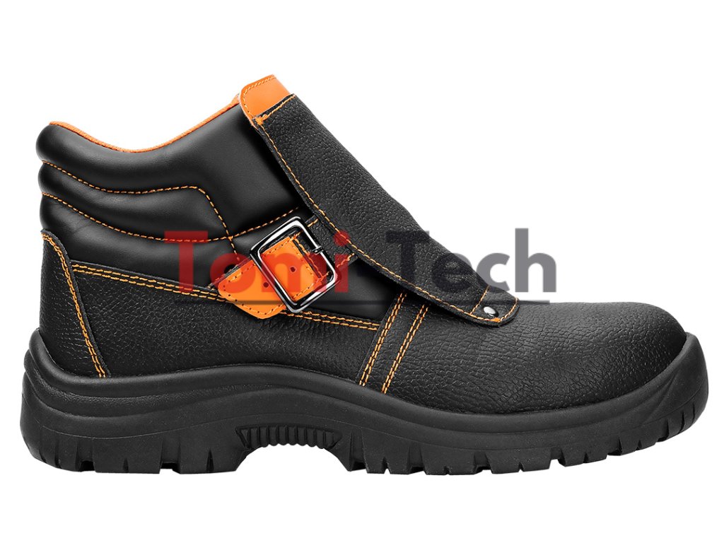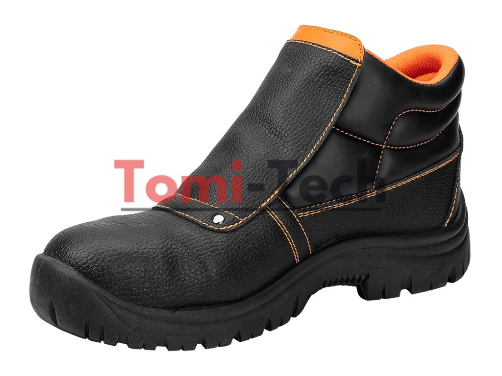 Zváračské topánky S1P SRC, zvršok: reliéfna štiepaná koža, podšívka: pletená sieťovina, podrážka: PU/PU, stielka: pena EVA, kovová špička a kovová vložka proti prepichnutiu, obuv vyrobená v kategórii S1P SRC (SRC - odolnosť proti pošmyknutiu na keramickom povrchu potiahnutom roztokom laurylsulfátu sodného (SLS) a na oceľovom povrchu potiahnutom glycerolom), špička poskytujúca ochranu pred nárazmi s energiou 200 J, odolnosť proti prepichnutiu, uzavretá päta, odolnosť voči olejom, benzínu a iným organickým rozpúšťadlám, antistatické vlastnosti, absorpcia energie v oblasti päty, jednoduché a dvojité šitie, šnúrkový kryt zapínaný remienkom s prackou, topánky určené na zváranie a prácu s kovom, certifikát CE, veľkosť 40Dodatočné parametre