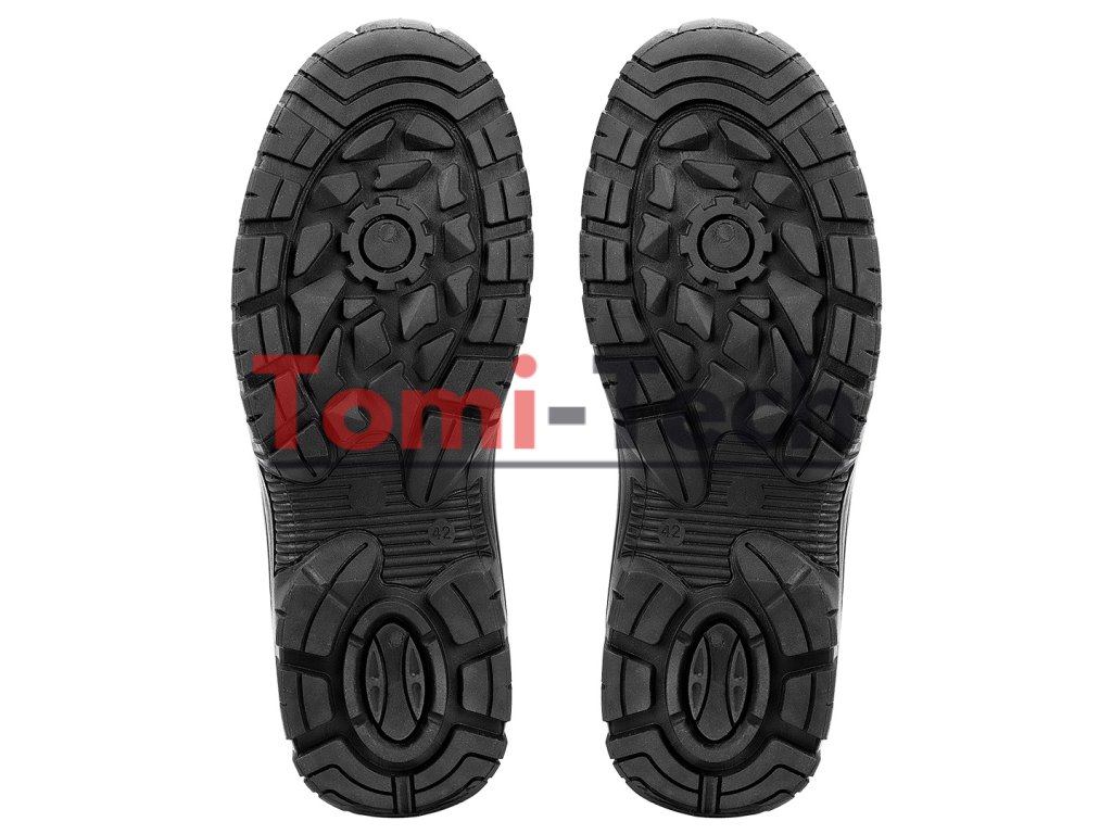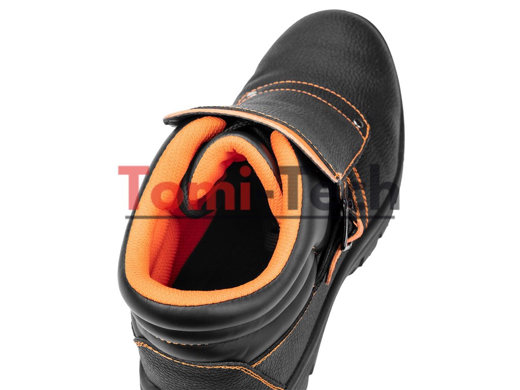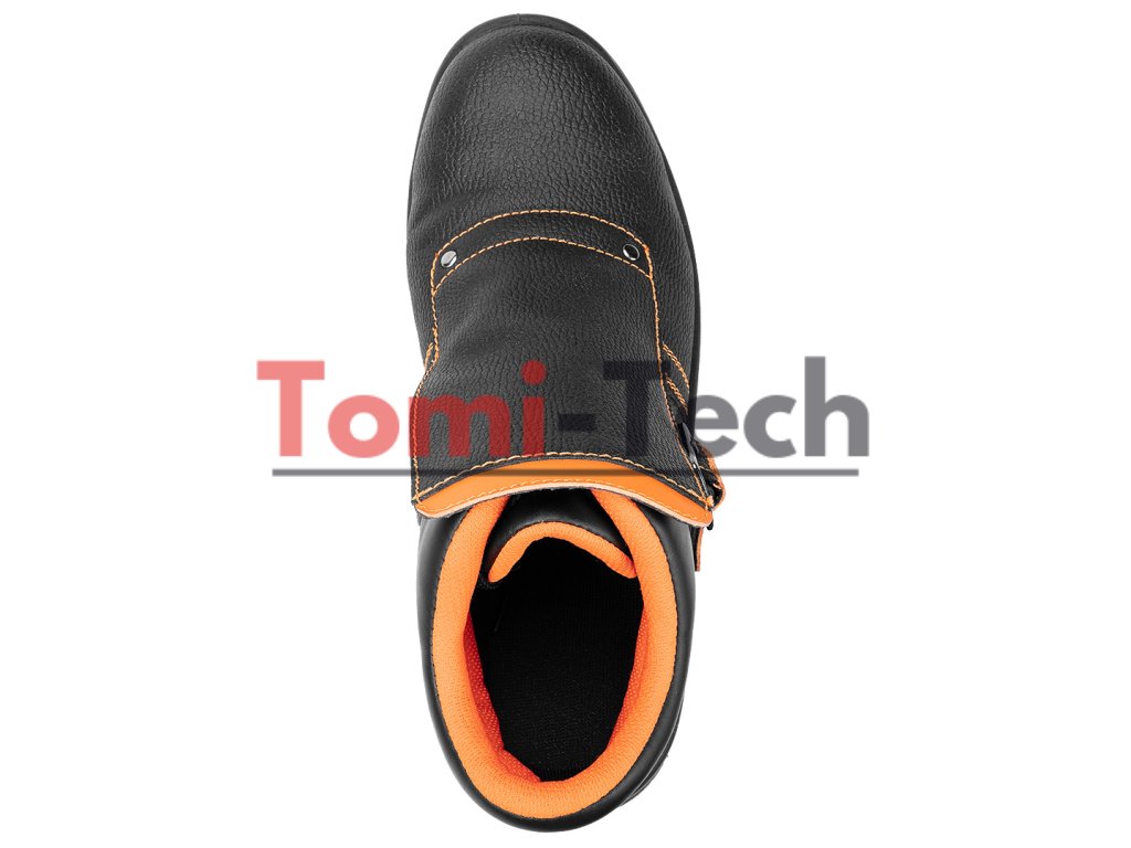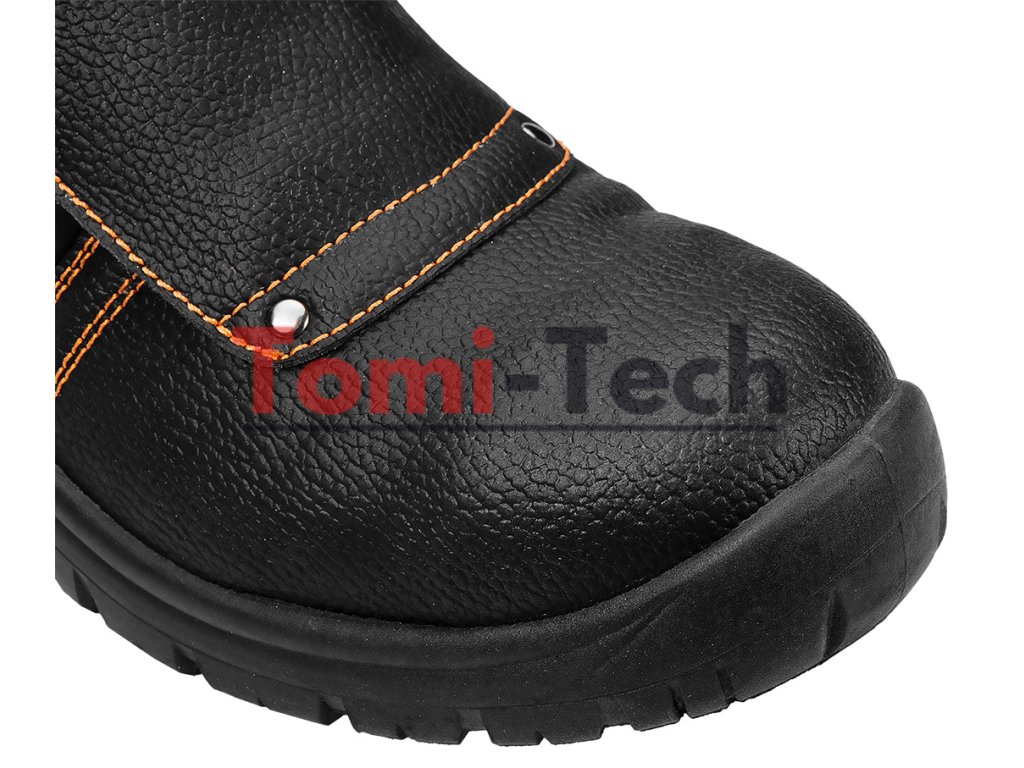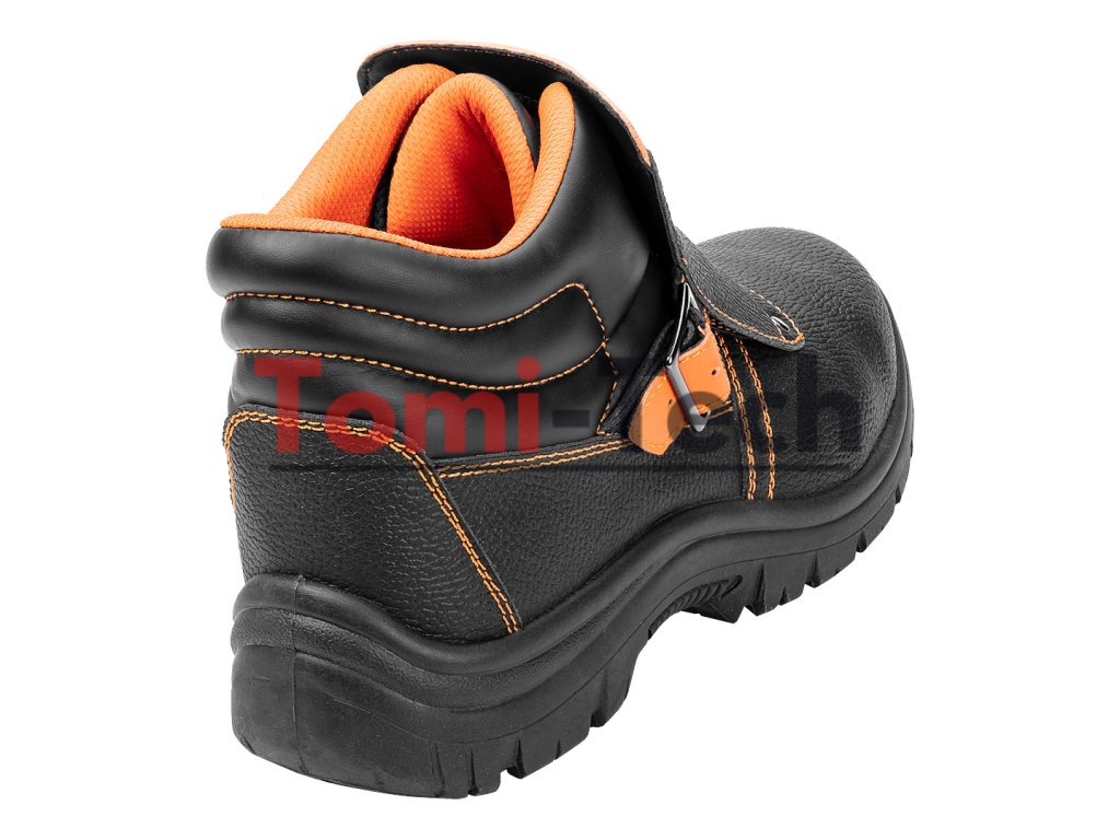 Zváračské topánky S1P SRC, zvršok: reliéfna štiepaná koža, podšívka: pletená sieťovina, podrážka: PU/PU, stielka: pena EVA, kovová špička a kovová vložka proti prepichnutiu, obuv vyrobená v kategórii S1P SRC (SRC - odolnosť proti pošmyknutiu na keramickom povrchu potiahnutom roztokom laurylsulfátu sodného (SLS) a na oceľovom povrchu potiahnutom glycerolom), špička poskytujúca ochranu pred nárazmi s energiou 200 J, odolnosť proti prepichnutiu, uzavretá päta, odolnosť voči olejom, benzínu a iným organickým rozpúšťadlám, antistatické vlastnosti, absorpcia energie v oblasti päty, jednoduché a dvojité šitie, šnúrkový kryt zapínaný remienkom s prackou, topánky určené na zváranie a prácu s kovom, certifikát CE, veľkosť 40Dodatočné parametre