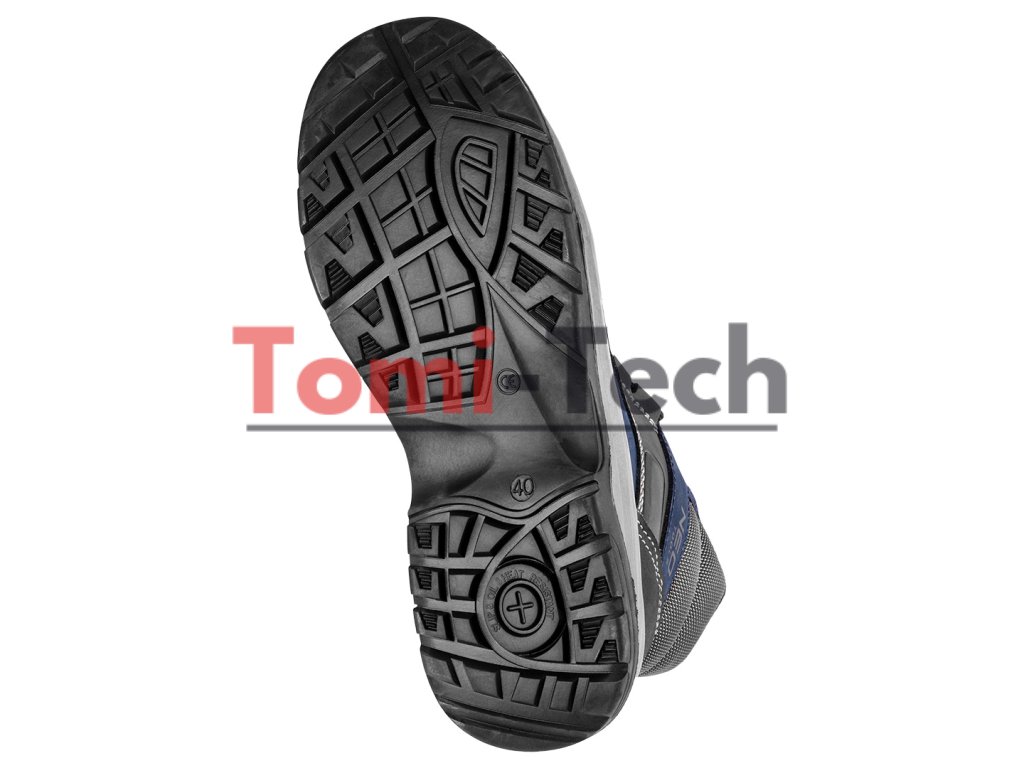 Pracovná obuv O2 SRC, nubuková, veľkosť 43, zvýšená odolnosť voči vode a vlhkosti, sieťovaná vnútorná podšívka, dvojhustotná PU podrážka, antistatická stielka, uzavretá päta, absorpcia energie v oblasti päty, podrážka odolná voči motorovej nafte (FO), šnúrky s votkanou reflexnou niťou, spĺňa požiadavky normy EN ISO 20347:2012 SRC FO O2 (SRC - odolnosť proti pošmyknutiu na keramickej podlahe pokrytej roztokom laurylsulfátu sodného (SLS) a na oceľovej podlahe pokrytej glycerolom), certifikát CEDodatočné parametre