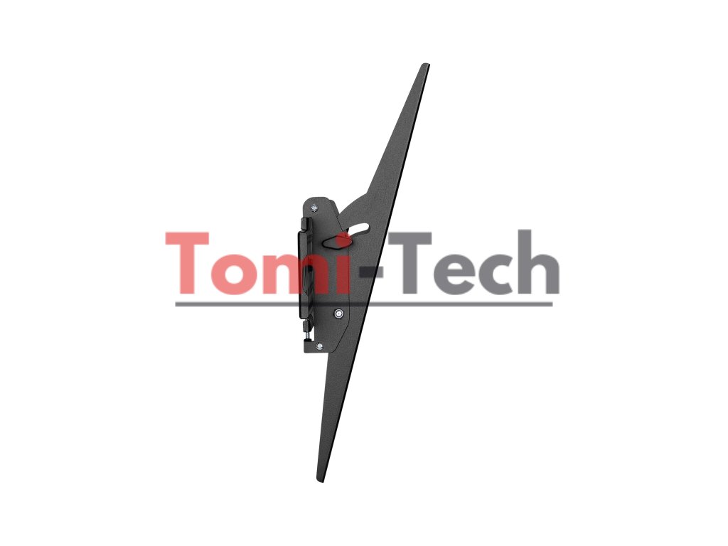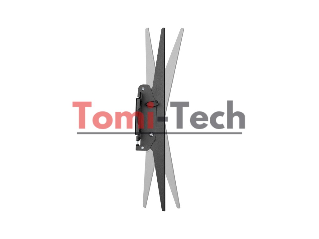 Vyrobený z masívnej ocele a práškovo lakovaný v elegantnej čiernej farbe, ponúka maximálnu nosnosť až 50 kg, čím poskytuje bezpečnú oporu pre väčšie televízory. Vďaka odolnej konštrukcii a modernému dizajnu nie je len funkčným riešením, ale aj elegantným doplnkom v každom interiéri. Vstavaná vodováha uľahčuje presnú inštaláciu a vzdialenosť 74 mm od steny zaručuje úhľadné a estetické uchytenie, a to aj pre zakrivené obrazovky.