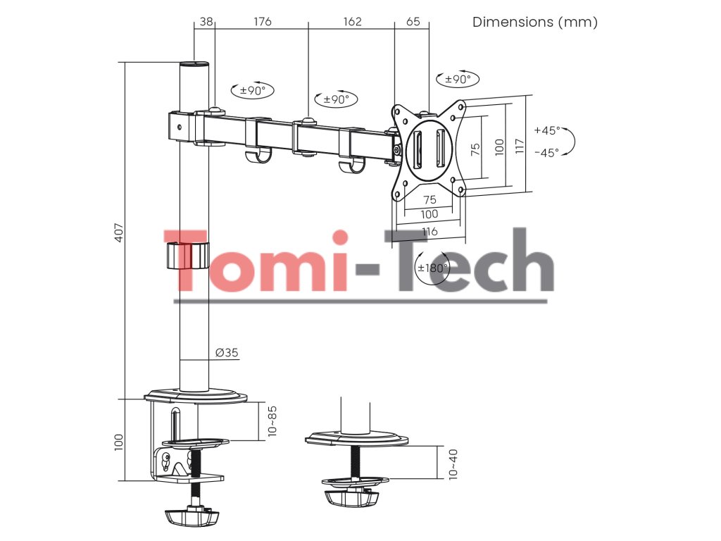 Univerzálny držiak pre LCD alebo LED monitory, ktorý je možné pripevniť na stôl alebo dosku stola. Určený pre monitory od 17" do 32" s maximálnou hmotnosťou 9 kg. Držiak optimalizuje ergonómiu a viditeľnosť nastavením uhla sklonu, natočenia, výšky atď. Toto riešenie zlepšuje pohodlie pri práci a pomáha predchádzať bolestiam krku a chrbta a namáhaniu očí.
