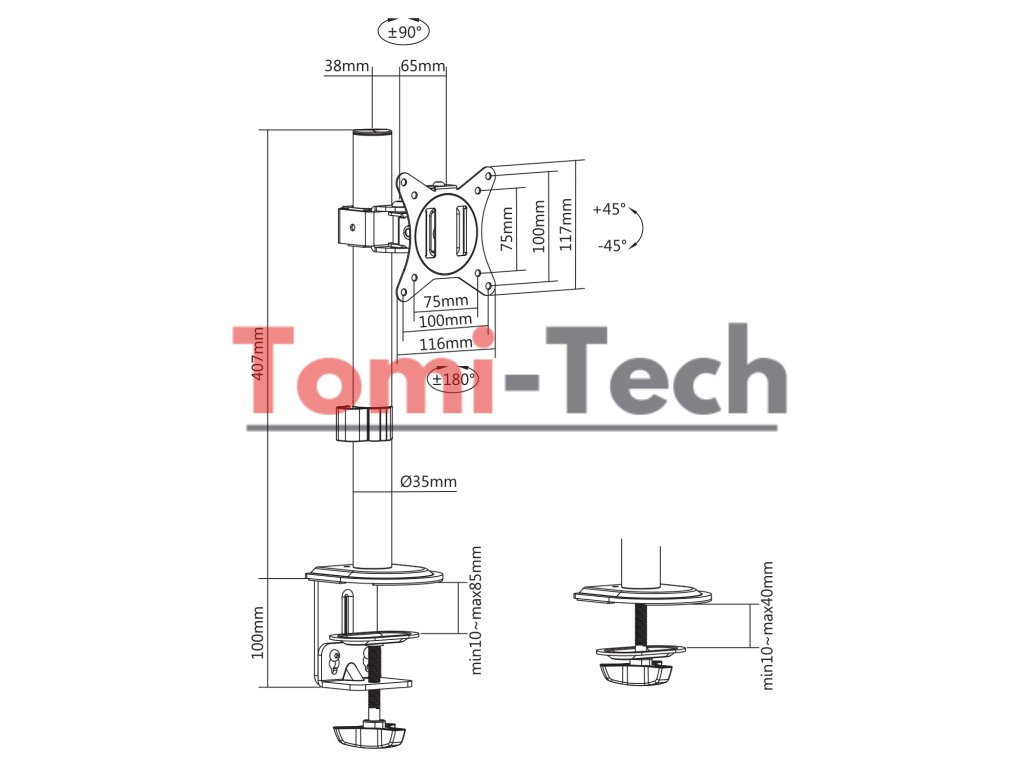 - Určené pre monitory od 17" do 32" (alebo väčšie, ak ich hmotnosť nepresahuje 9 kg a štandard VESA je kompatibilný s držiakom)