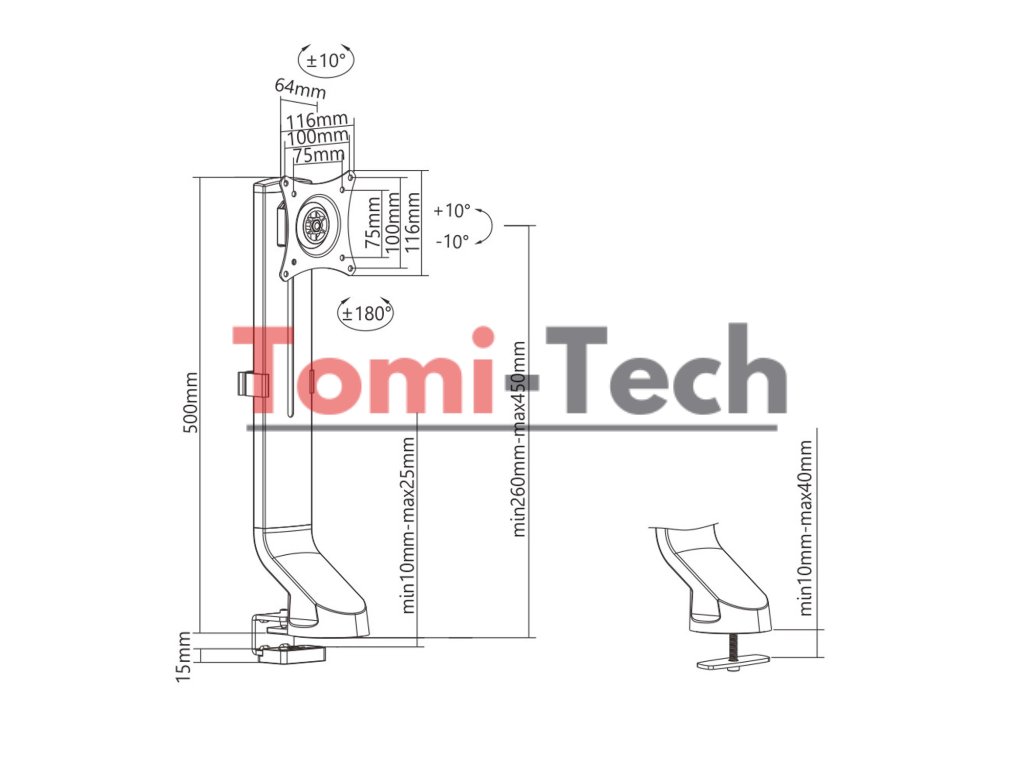 Univerzálny držiak na montáž na stôl alebo dosku stola pre LCD alebo LED monitor. Držiak je určený pre monitory s uhlopriečkou 17" - 32" s maximálnou hmotnosťou 8 kg.