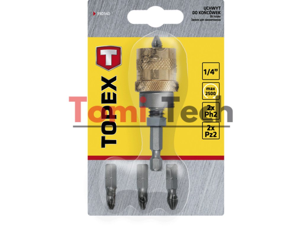 Držiak bitov, 1/4", 65 mm, 5-dielna sada, 4 ks skrutkovacích bitov 25 mm, veľkosti: 2 x PH2, 2 x PZ2Dodatočné parametre