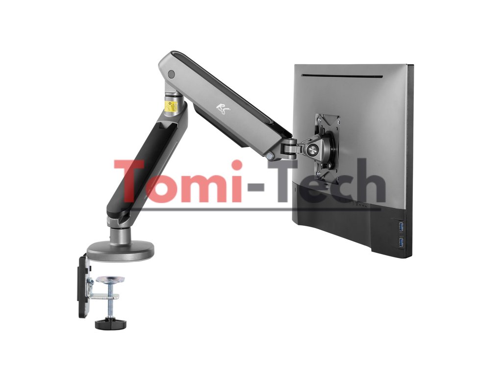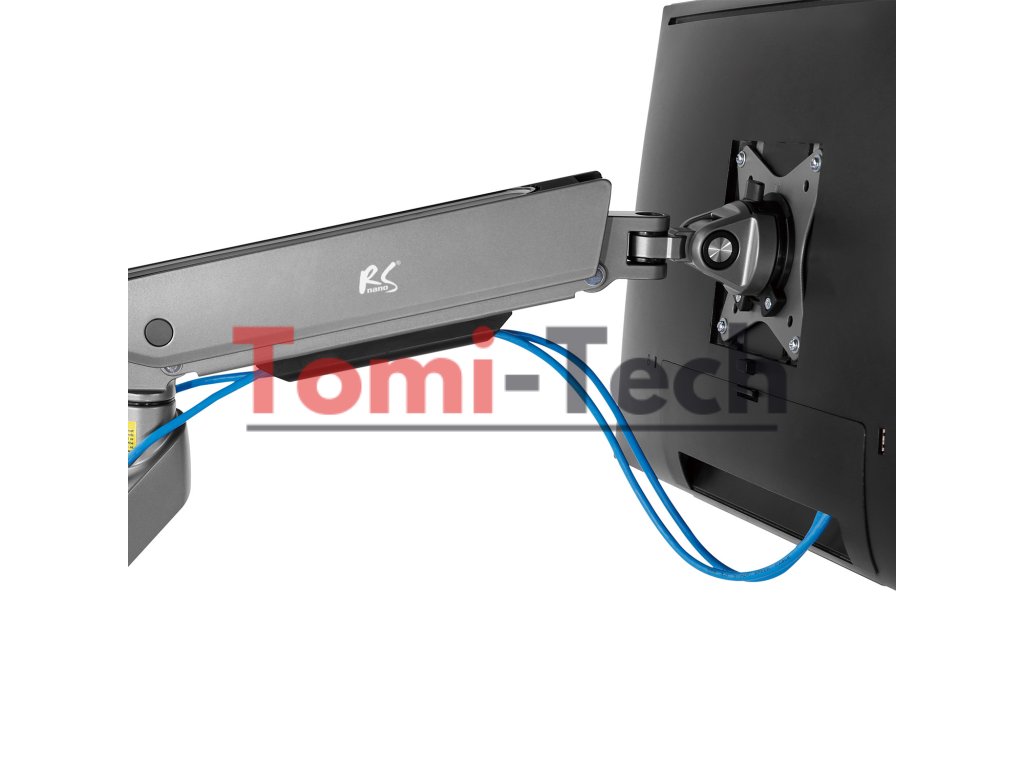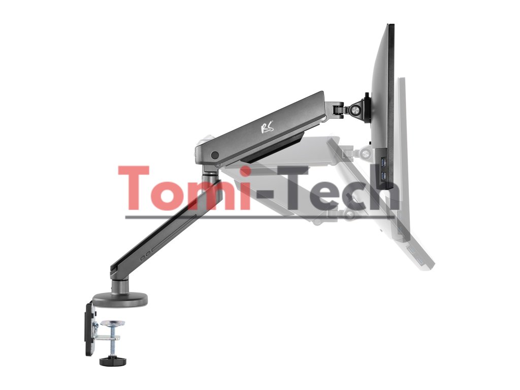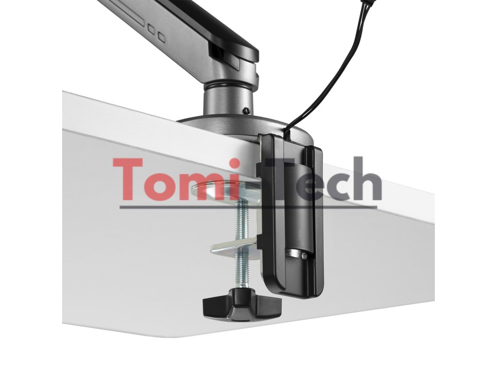 Rameno je vyrobené z vysoko kvalitných materiálov, vybavené odolnou montážnou svorkou, ktorá umožňuje montáž na stôl alebo iné rovné povrchy, ako aj úchytom umožňujúcim montáž držiaka do otvoru pre kábel.