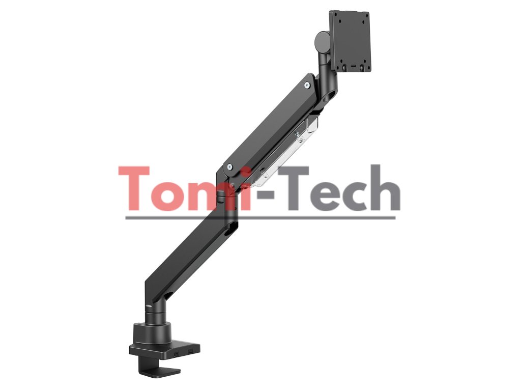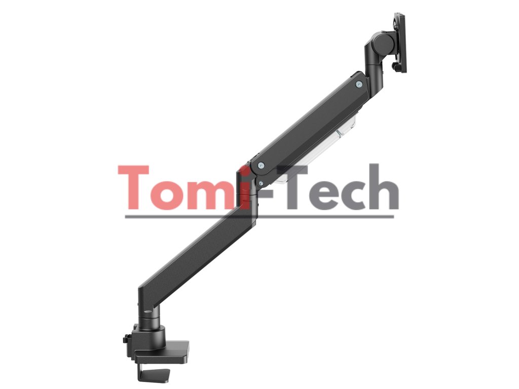 Držiak je vybavený plynovou pružinou pre plynulé nastavenie výšky monitora. To vám umožňuje jednoducho nastaviť polohu monitora podľa vašich preferencií a zvýšiť alebo znížiť ho v priebehu niekoľkých sekúnd. Držiak je vyrobený z odolných materiálov, ktoré zaručujú stabilitu a bezpečnosť monitora.