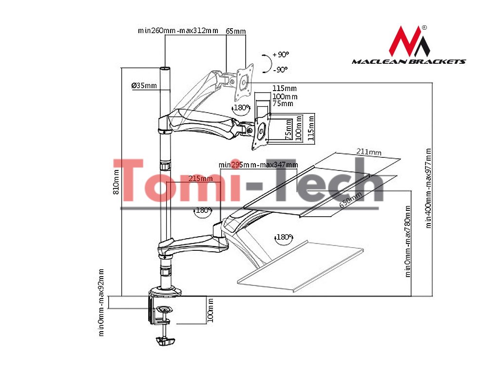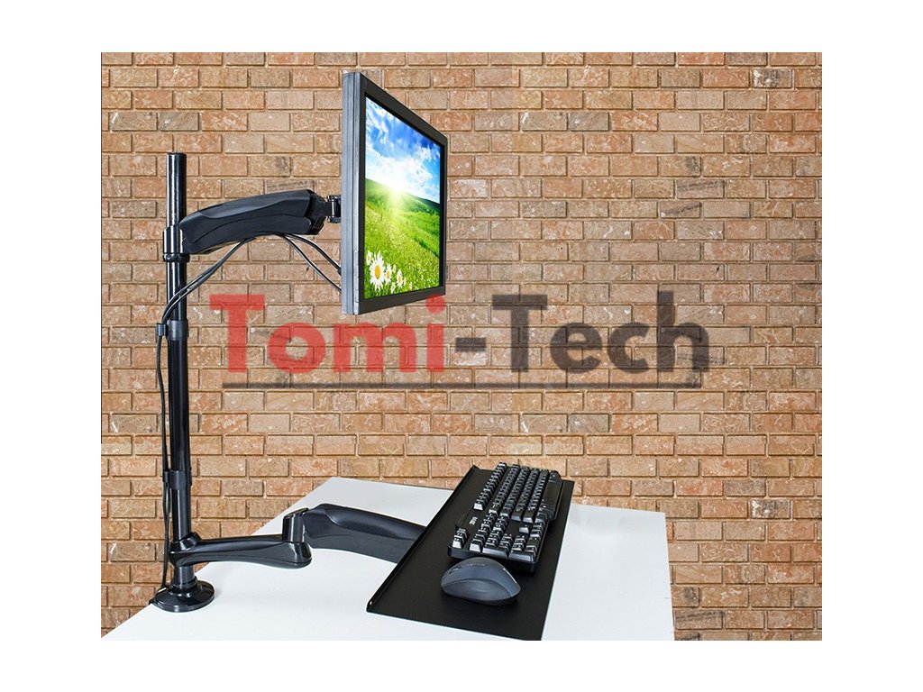 Univerzálny držiak na monitor a klávesnicu, ktorý je možné pripevniť na stôl, tabuľku alebo do otvoru na vedenie káblov. Držiak je určený pre monitory s uhlopriečkou obrazovky od 13" do 27" a maximálnou hmotnosťou 9 kg. Držiak je vyrobený z najkvalitnejšieho kovu (kombinácia ocele, tlakovo liateho hliníka a plastu) v čiernej farbe, prvky sú dokonale zladené a poskytujú stabilnú a bezpečnú oporu pre monitor a klávesnicu.