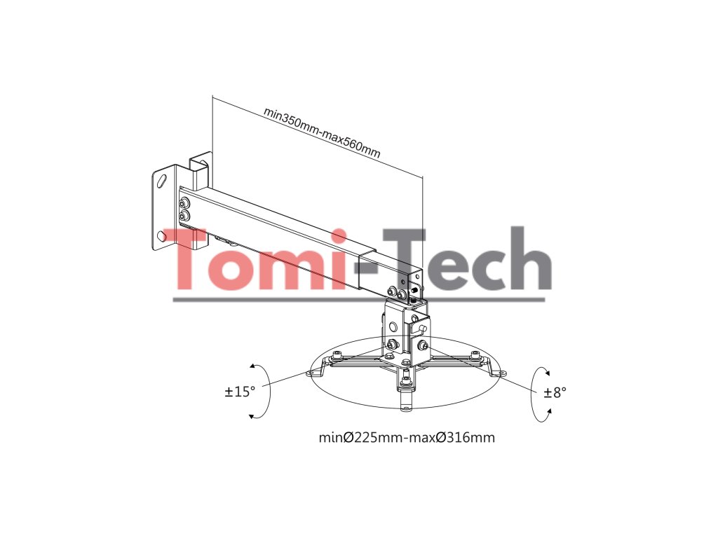 Hľadáte držiak na stenu/strop, ktorý umožní vysokokvalitnú projekciu obrazu z vášho projektora? Držiak Cabletech kombinuje výnimočnú flexibilitu s pevnosťou a zaisťuje vynikajúcu kvalitu obrazu v každej situácii. Vďaka vertikálnemu nastaveniu od +15° do -15° a horizontálnemu nastaveniu od 8° do -8° si môžete presne nastaviť polohu projektora podľa svojich potrieb, čo je obzvlášť užitočné počas prezentácií alebo tímovej práce.